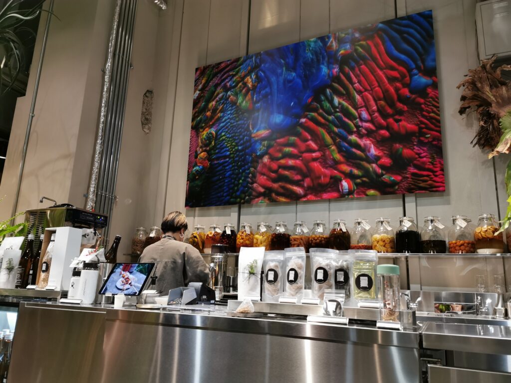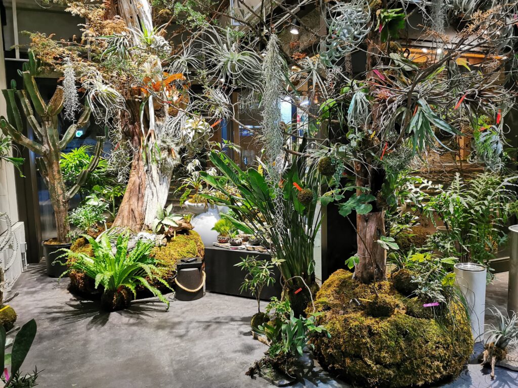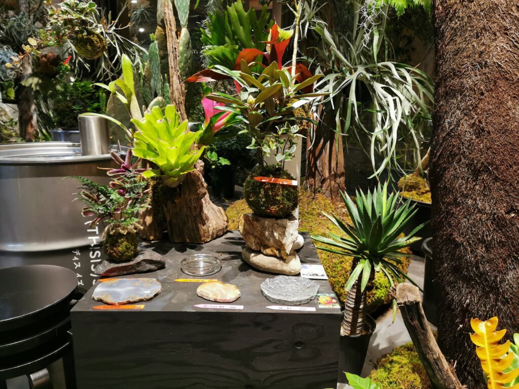 それにしても店内は植物でうめつくされ、岩などのモチーフもあり、まさに自然の中のよう。 天井が高く、緑もたくさん、BGMから鳥の声もきこえてなんだか癒されます。