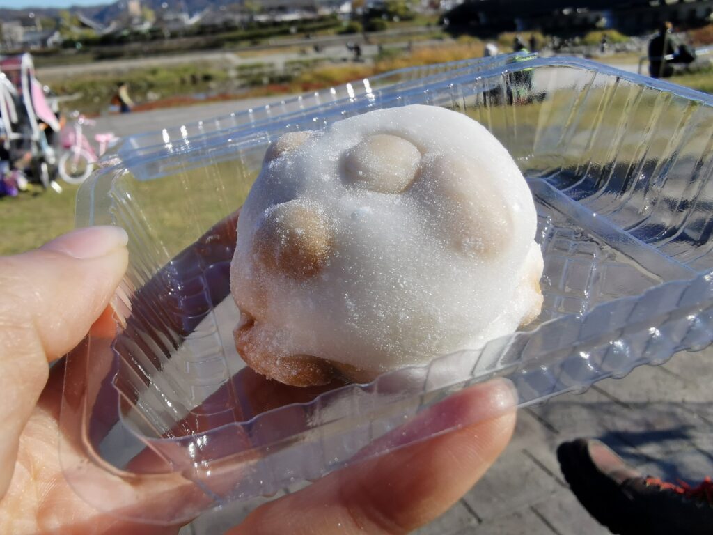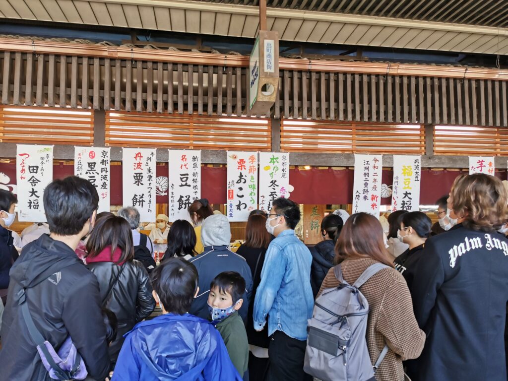 創業明治32年の京都で一番人気の豆餅。 12月時点でコロナの影響で人がすくないといいつつも、30分ほど並びました。