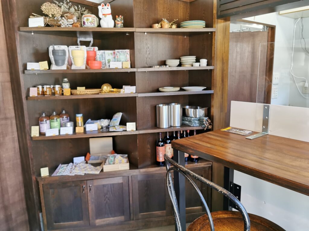 反対側には販売している小物などが陳列しています。 それにしても古道具屋さんの雰囲気も残っていて、小さいながらも素敵な店内です。