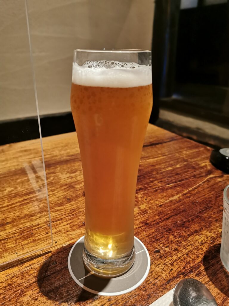 まずは飲み物を。アルコールは提供されていないので、ノンアルビールの「琥珀 650円」を。 かんきつ系の香りでさわやかで飲みやすい。そしてかなりクオリティの高いノンアルビールで、これはこれですごくいい。