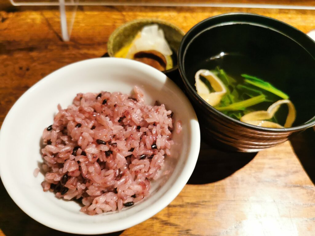 <御飯膳> ・黒米御飯 ・香物 ・すまし汁