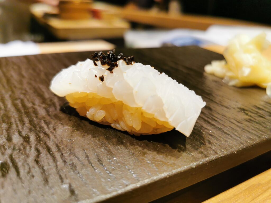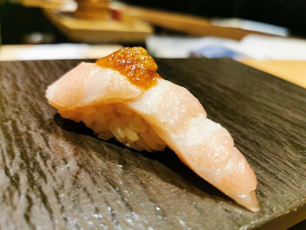 寿司:本日のお任せ握り ハタ、剣先いか、アジ、つぶ貝