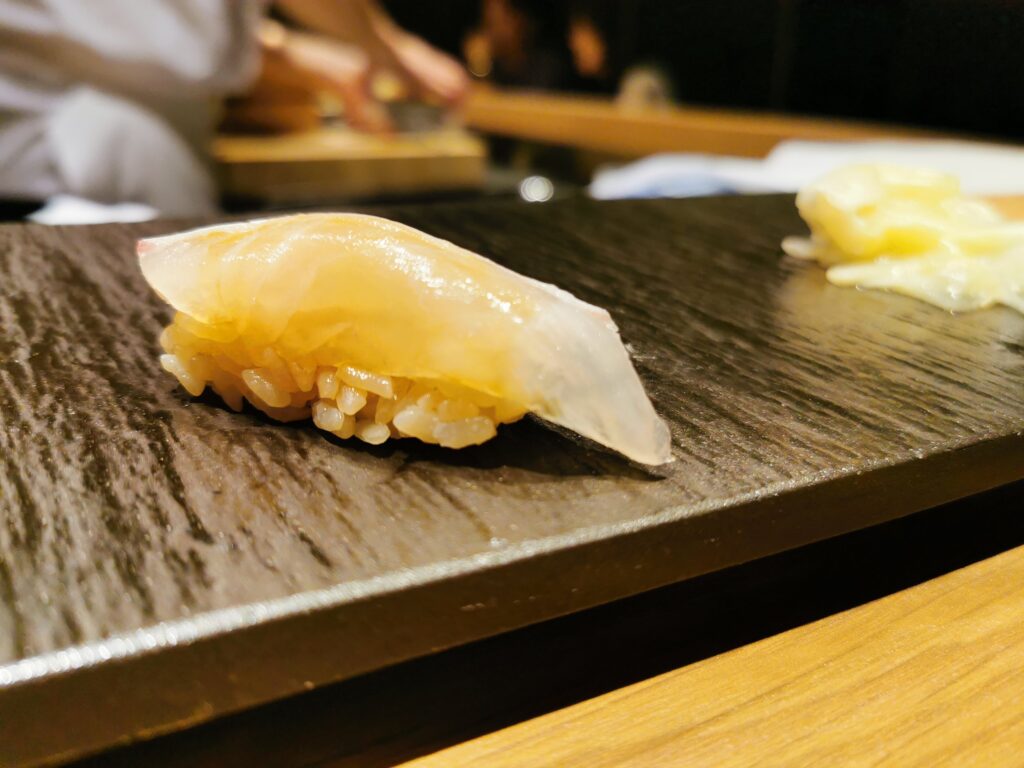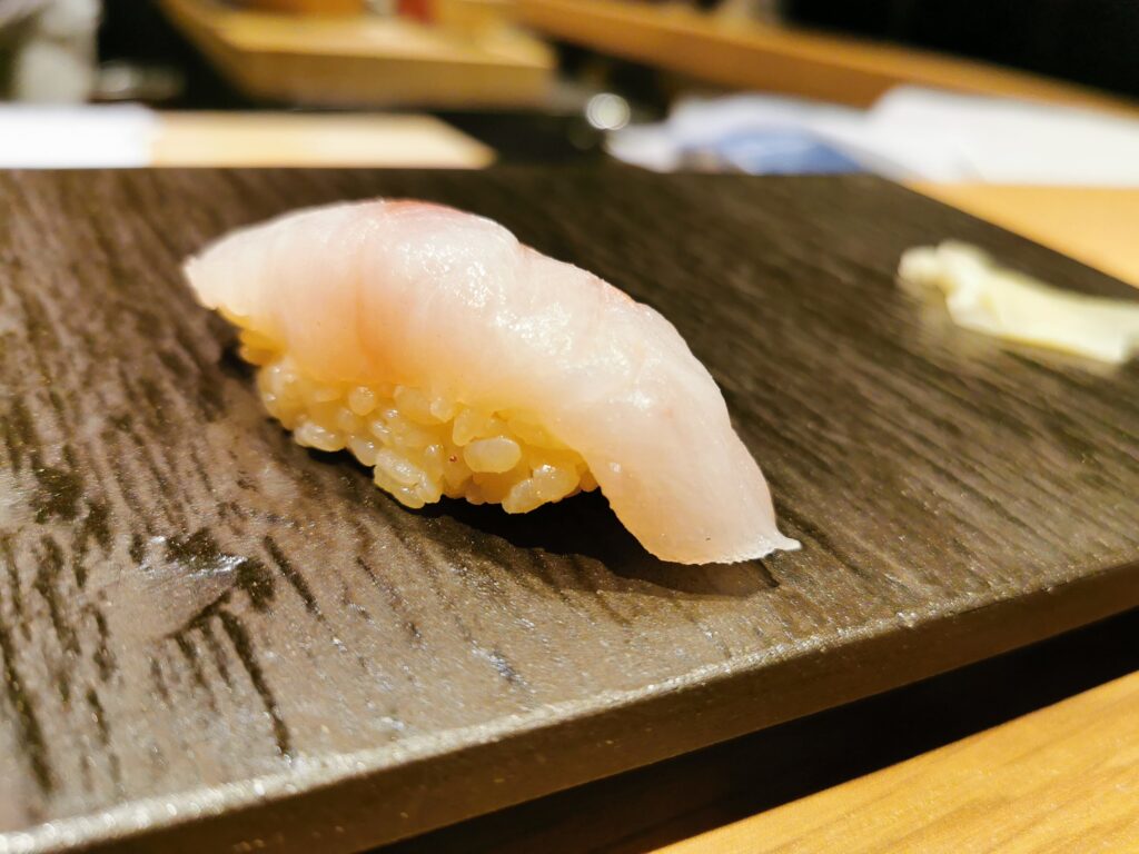 寿司:本日のお任せ握り ノドグロ、クルマエビ、メイチダイ、アナゴ