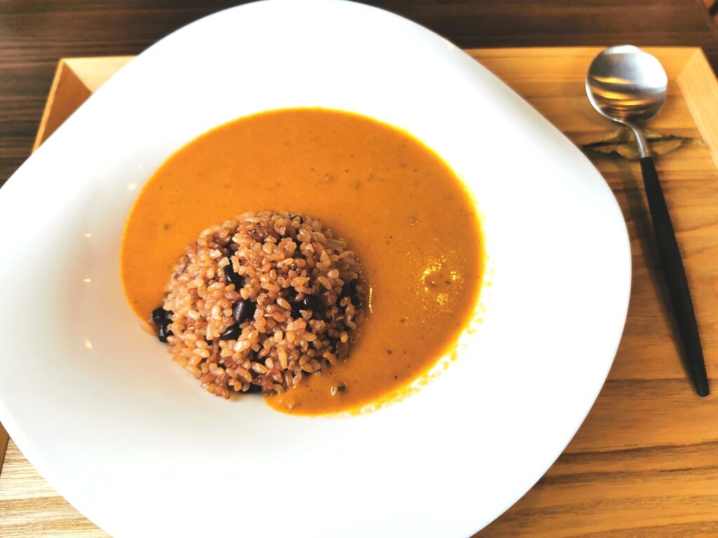 エビのエキスたっぷりのカレーはシンプルな見た目とは反して、かなり濃厚な味わい。