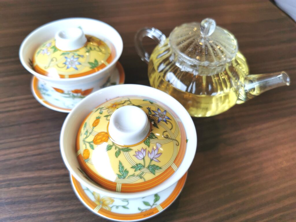 お茶は台湾の「金萱茶(きんせんちゃ)」。 甘い香りが心地よい、きれいなお茶。 そしてこの茶器ですが、先ほどまで飾られていてとても気になっていたのですが、 実際に使わせてもらって、目でも楽しむことができました。