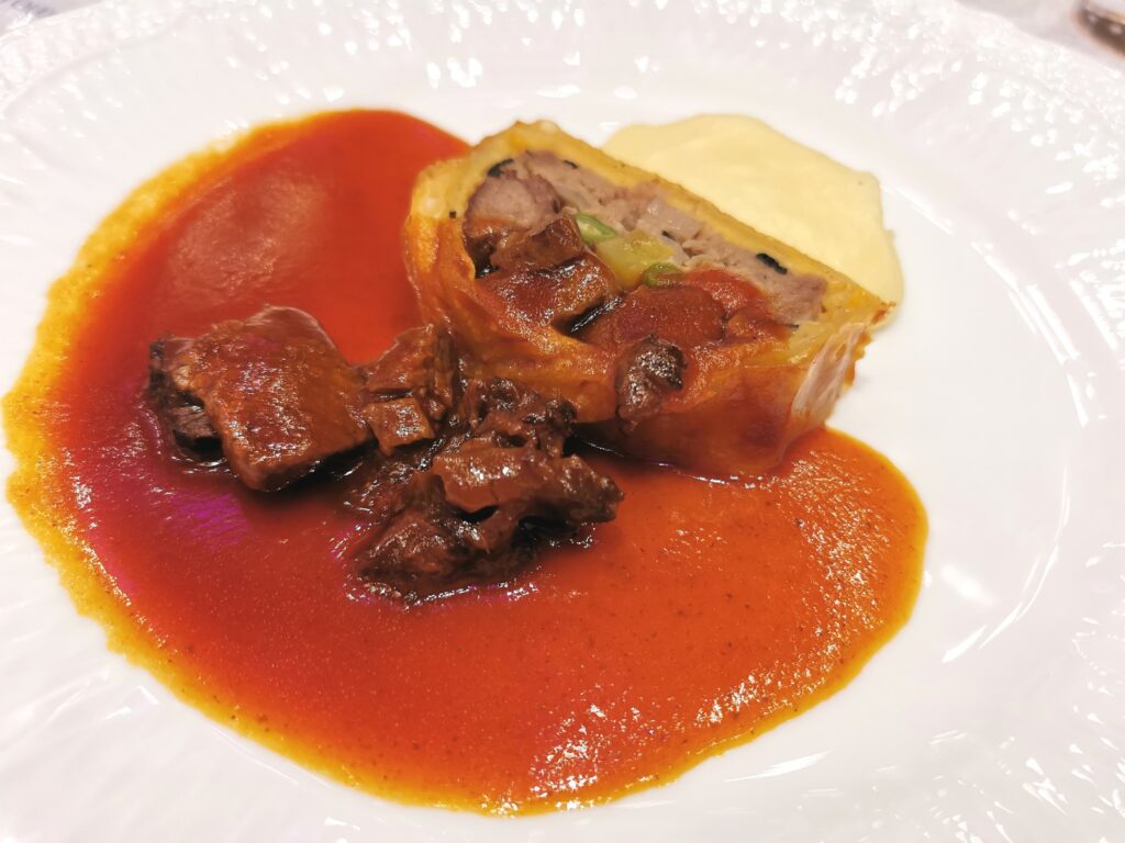 大人気淡路牛と玉ねぎを使ったパイ包み。牛肉なのですが、どことなくさわやかで食べやすい。 コクや旨味のしつこくなく、お肉なのにきれいな味。