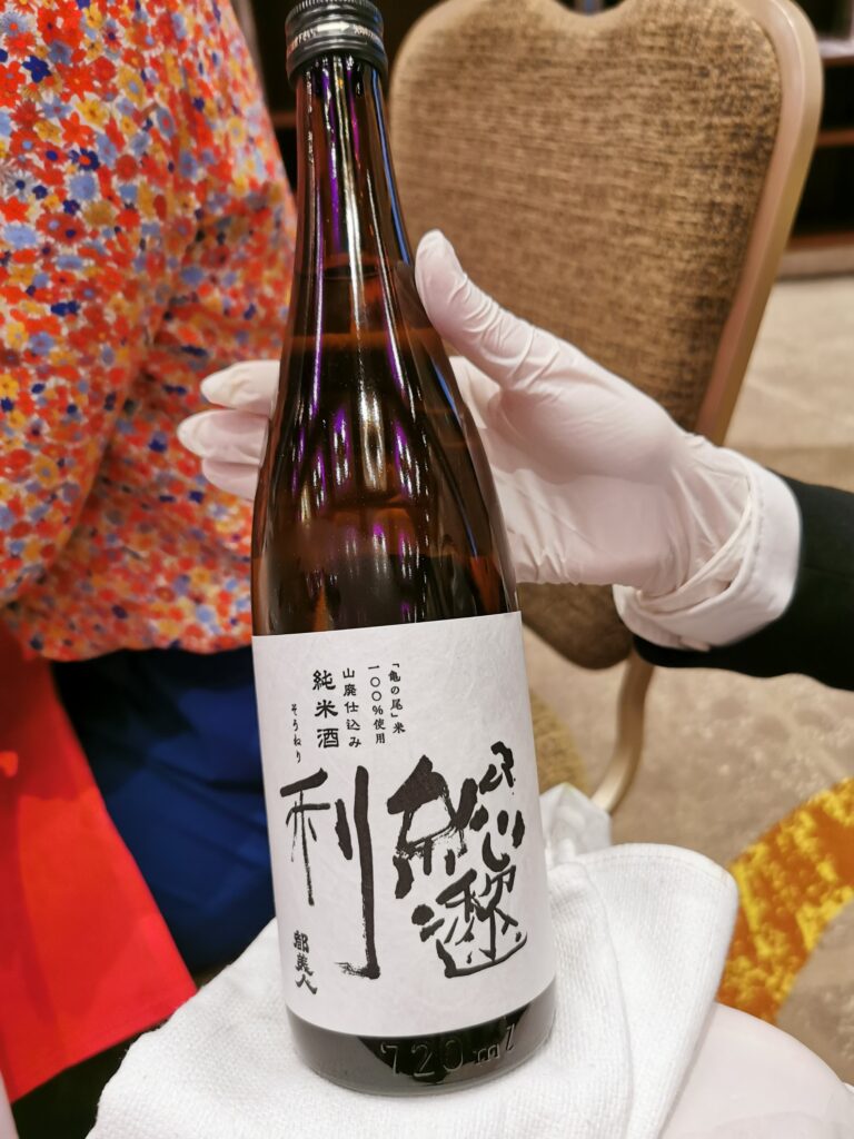 島でつくられている「総邌利(そうねり)」という日本酒もいただきました。 純米山廃仕込み亀の尾米100%使用。 魚介類に合う、しっかりとした骨格でありつつも深い味わいのお酒。
