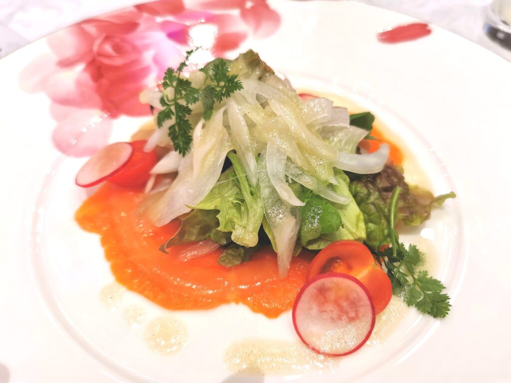 甘くまろやかな玉ねぎにサーモンの組み合わせがたまりません! ぷちふわというトマトは皮が薄く、プチっとしないふんわりした食感がすごくいいですね。