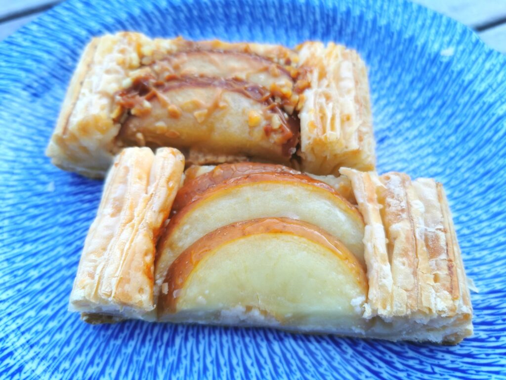 実食は自宅に戻ってから、オーブンで温めていただきました! サクサクであっさり目のパイ生地にカスタードクリームとリンゴの甘みと酸味で、食べやすい。 リンゴの味を引き立てるバランスで作られています。