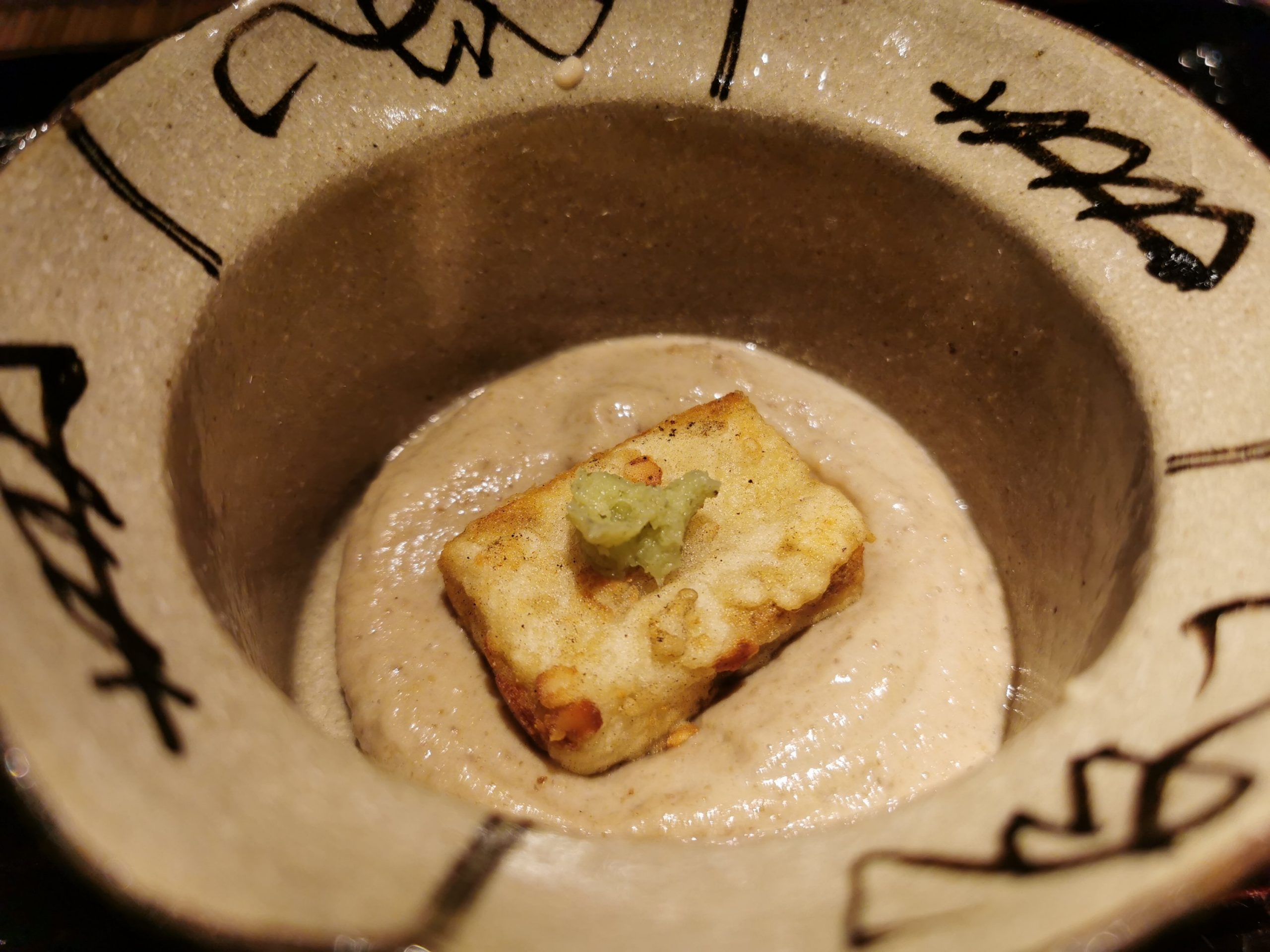 凍り豆腐の揚げ物だったと思います。 クルミのようななめらかなソースとともにいただきました。