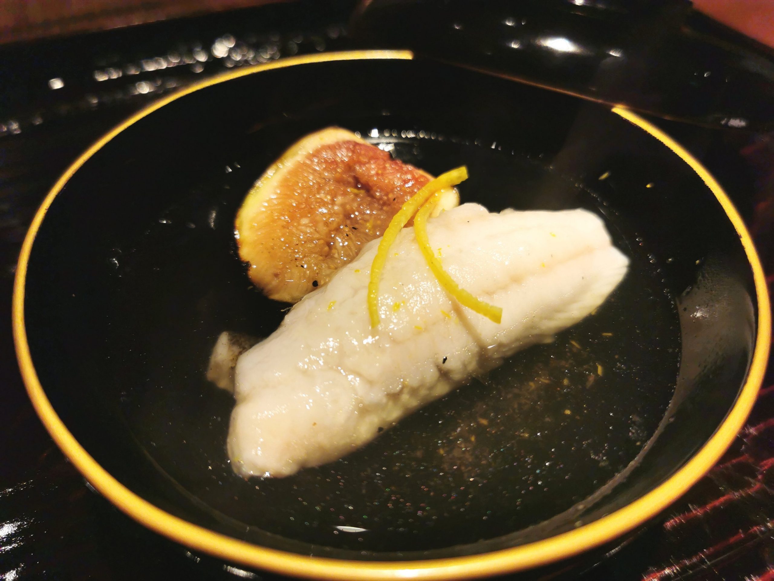くえと焼きイチジクのお椀 香ばしい焼きイチジクが良きアクセントに!