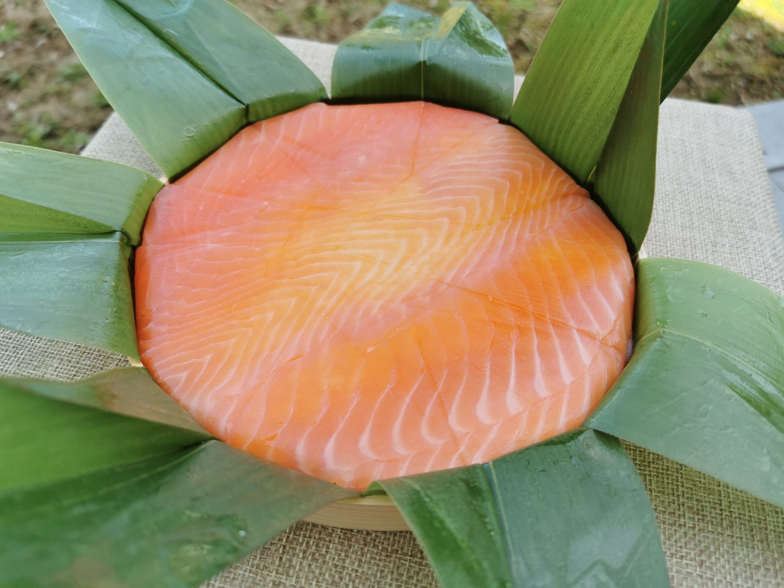 そして笹をひろげると、サーモンピンクの鱒が目に飛び込んできました。 穏やかなきれいな色ですね。