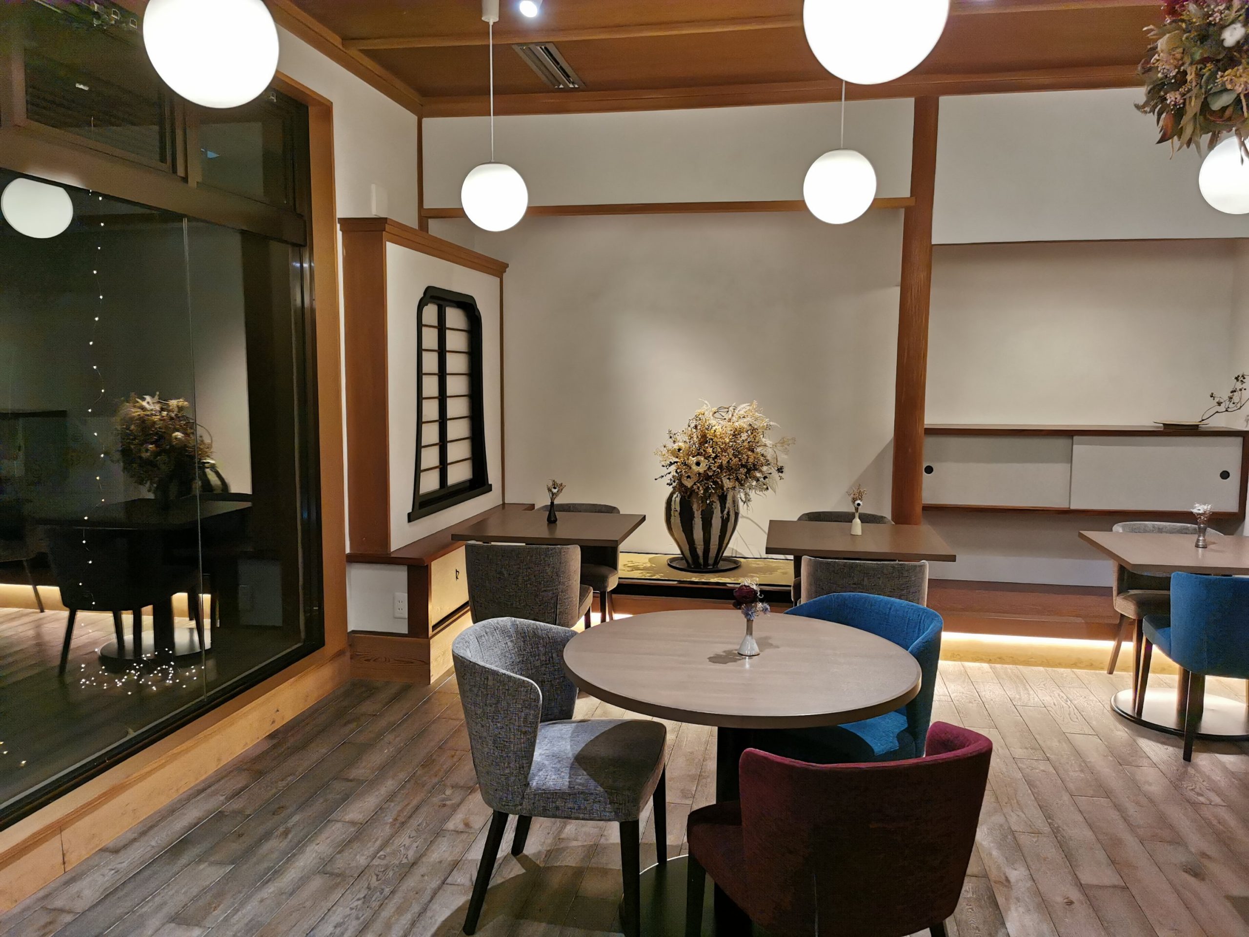 中に入ると急に空間が明るくなり、センスよくゆったりとした印象。 北鎌倉らしい和モダンなテイストで、オーベルジュのようなラグジュアリー感があります。