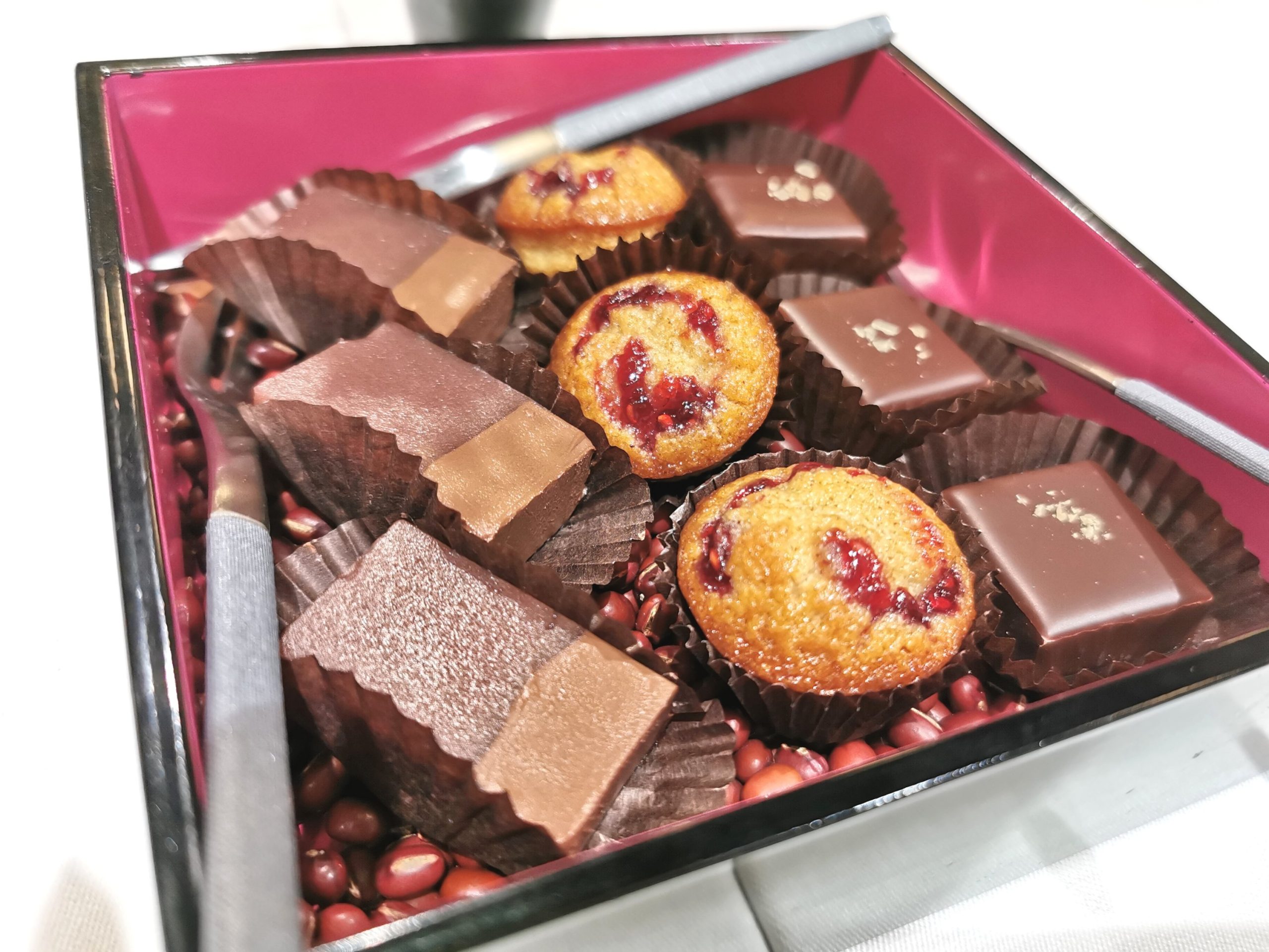 ショコラトリー カルヴァのチョコが出てきました。スイーツも充実して、最後まで大満足でした!