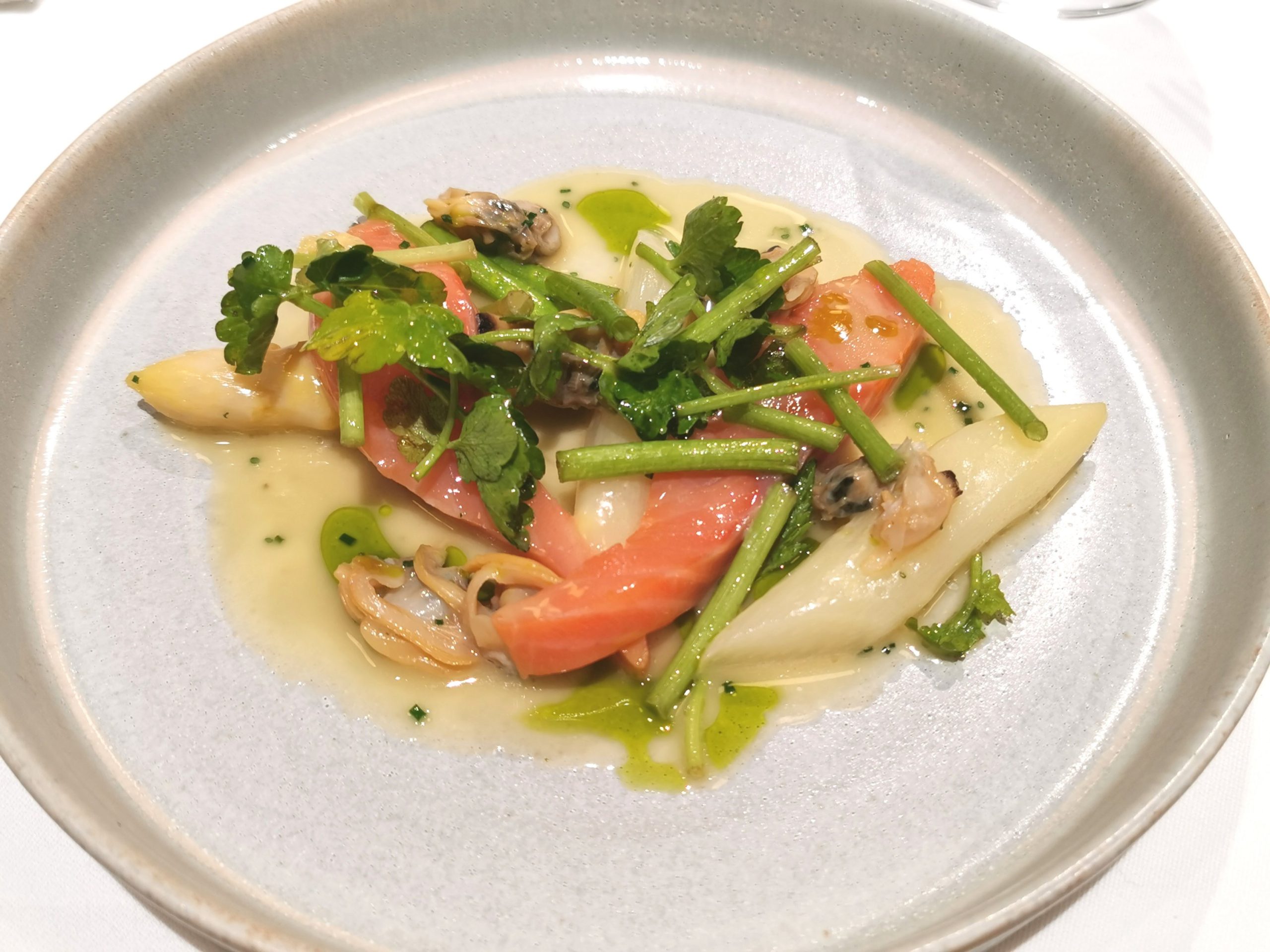 春を感じる食材と色合い、貝の旨味が際立つソース、そこにセリのさわやかさと、味の組み合わせのセンスも抜群。めちゃくちゃ好みの組み合わせでした。