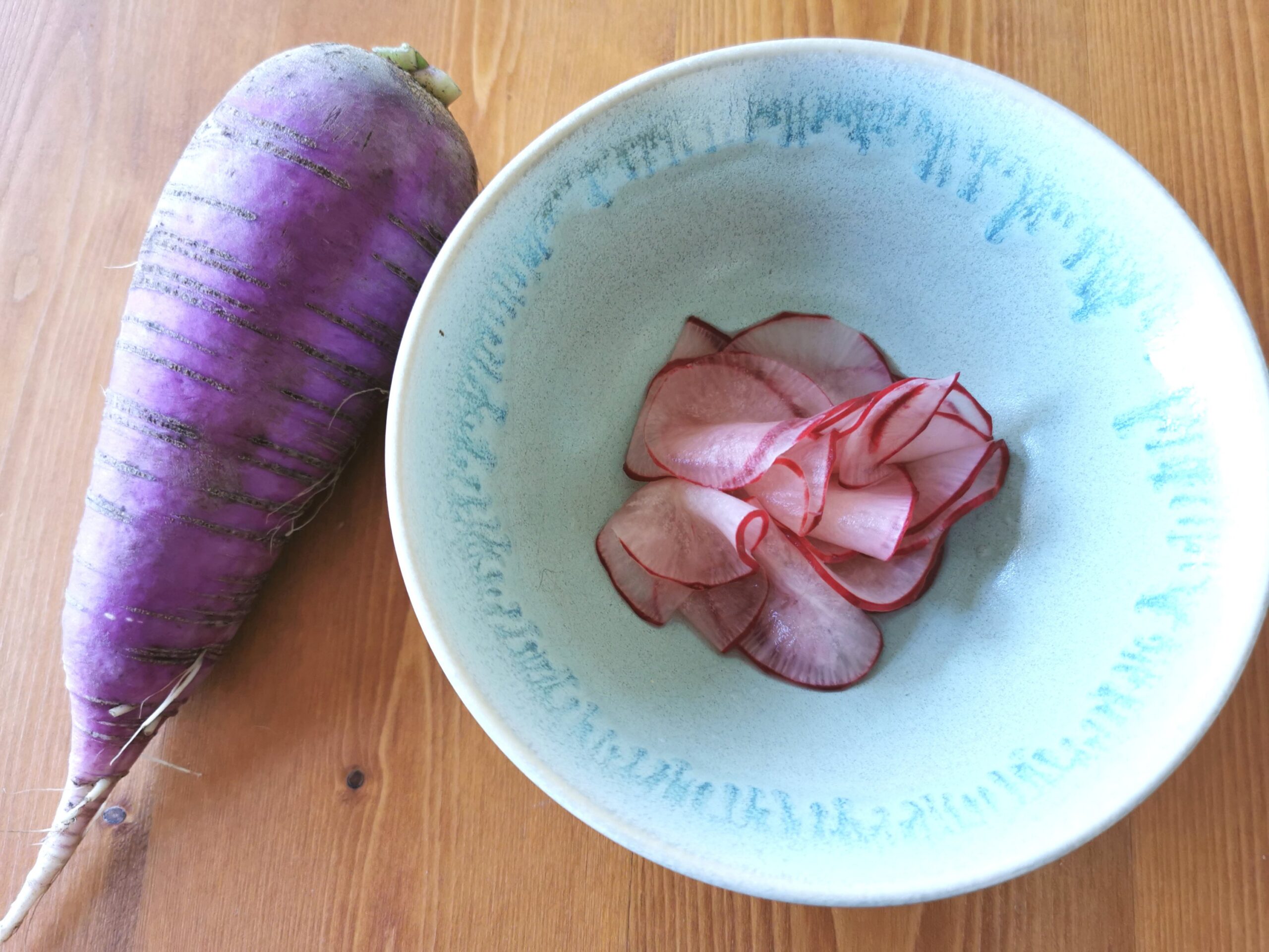 しゃっきりとした食感にほんのりした甘さとお酢のまろやかさが、大根にしみこんでとても美味しく仕上がりました。