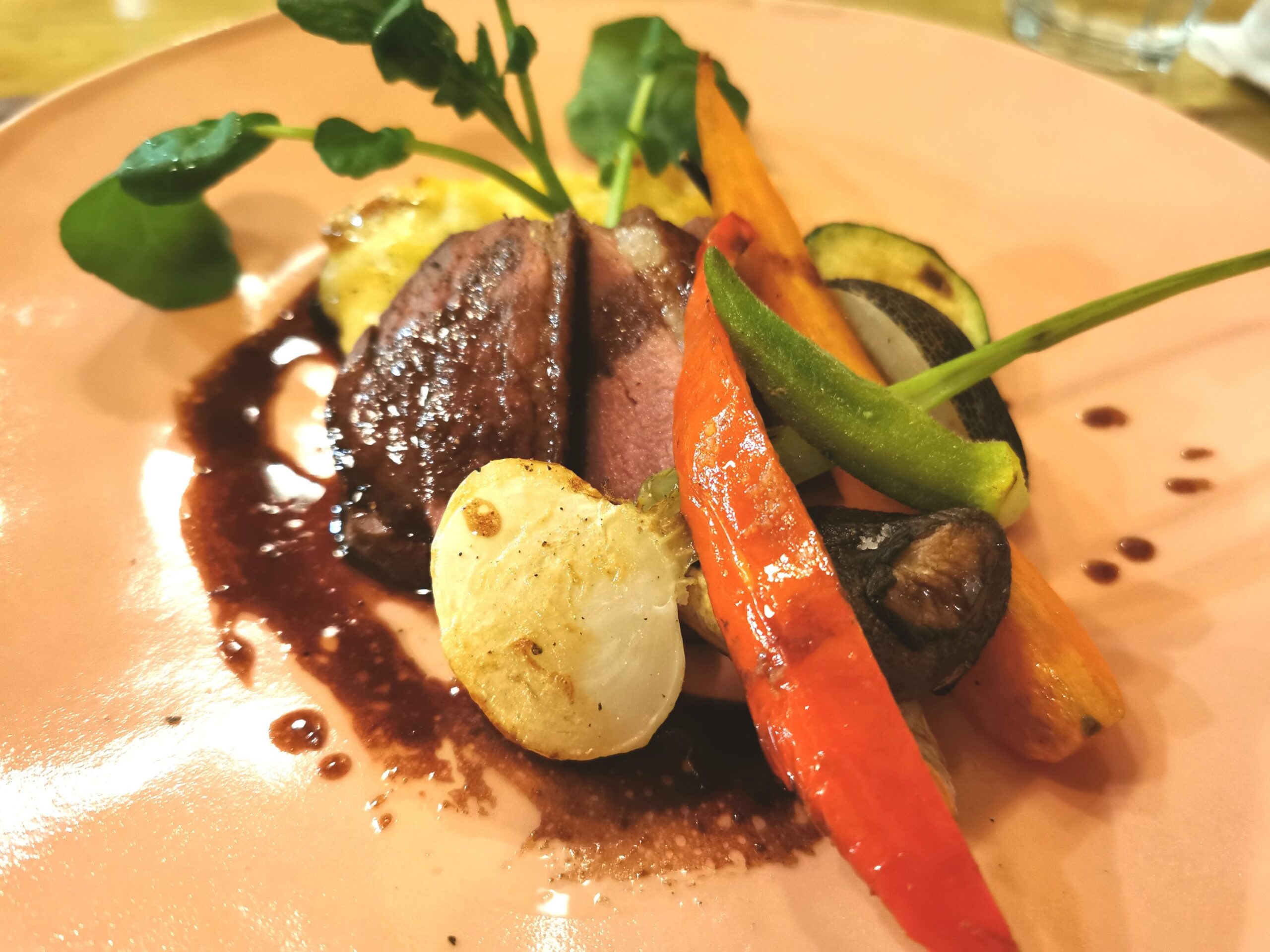 ハンガリー産マグレ・ド・カナール グラタン・ドフィノワと地物野菜 赤ワインソース