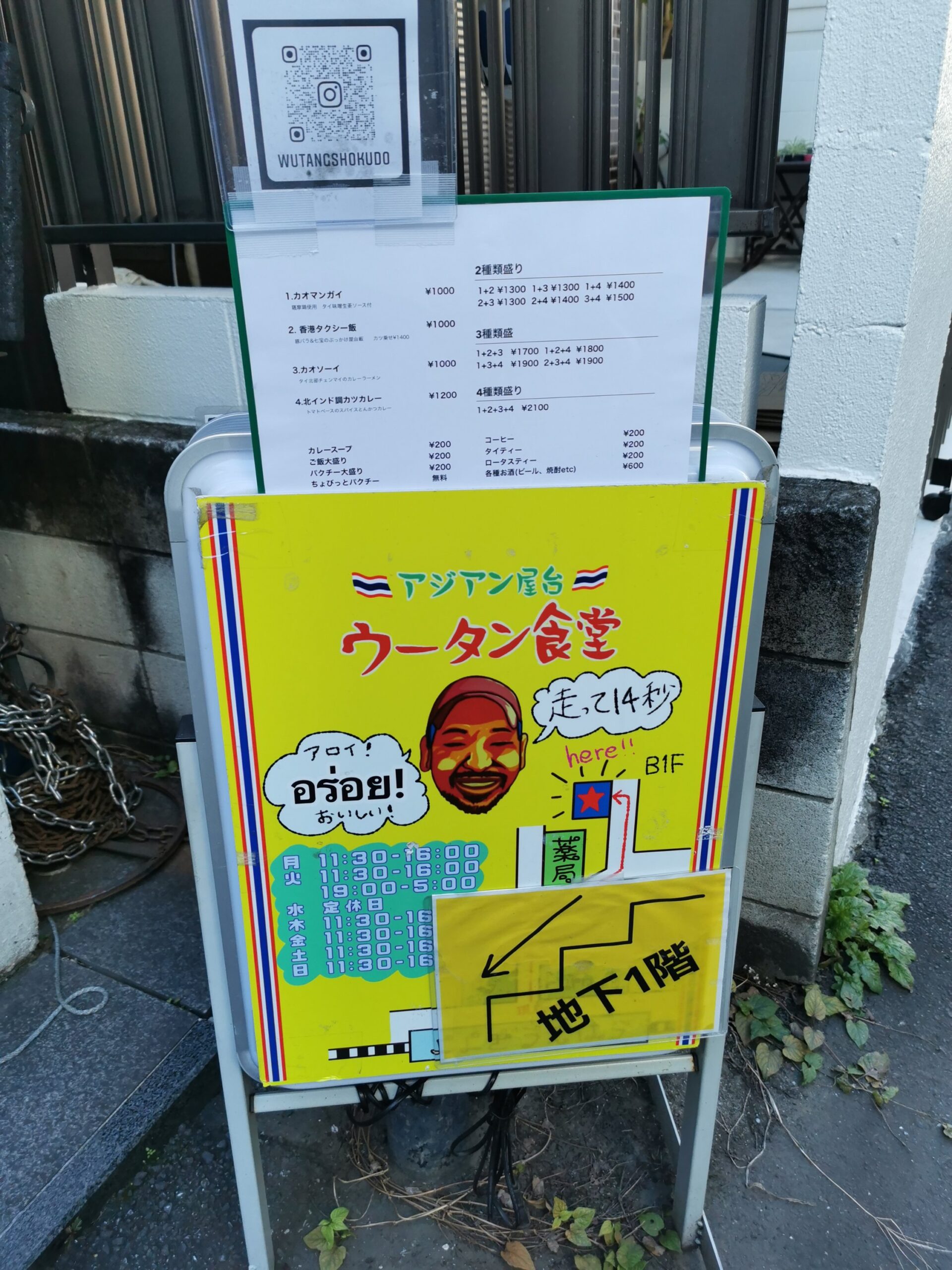 ランチどこで食べようかなと思いうろうろしていたら、マンマーノの奥、552の地下に「ウータン食堂」の張り紙が。 気になったので入ってみました。