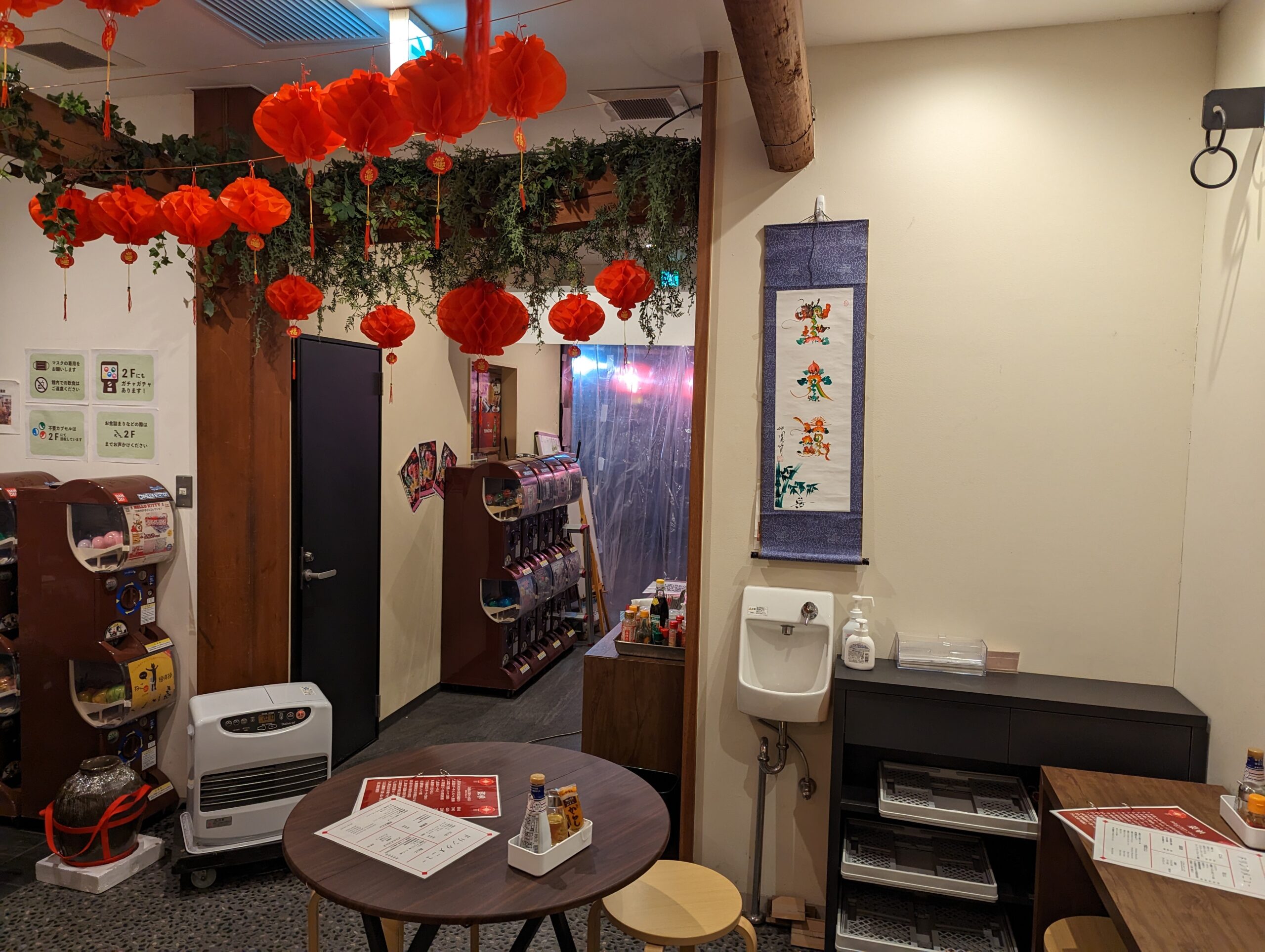 店内はカジュアルでこじんまりと。 2Fで営業しているカプセルトイの販売機が並んでいます。