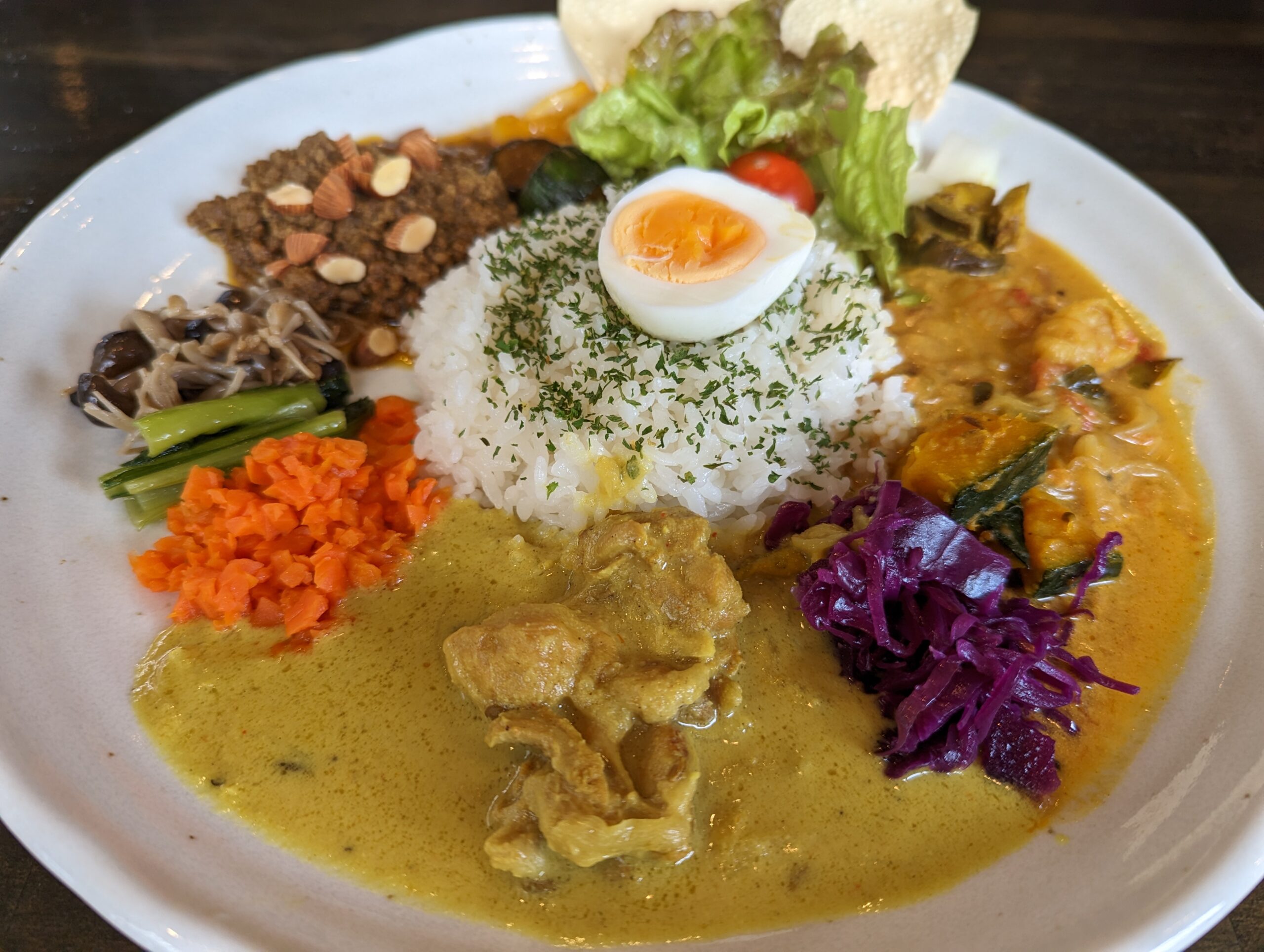 ・海老とココナッツ ・豚とナッツのキーマ ・レモンチキンカレー