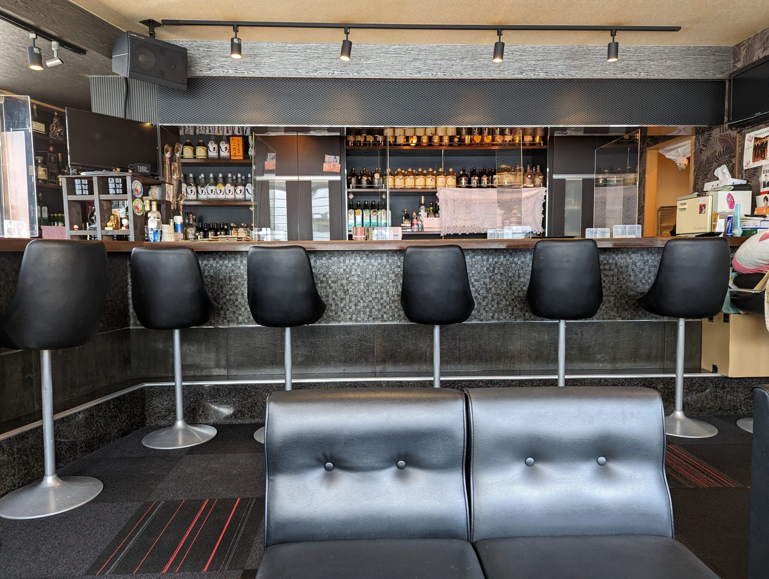 スナックは雑居ビルの2Fにあり少しわかりにくいかも。 店内もまるっきりスナック仕様。外の光を入れているので、雰囲気は明るいです。