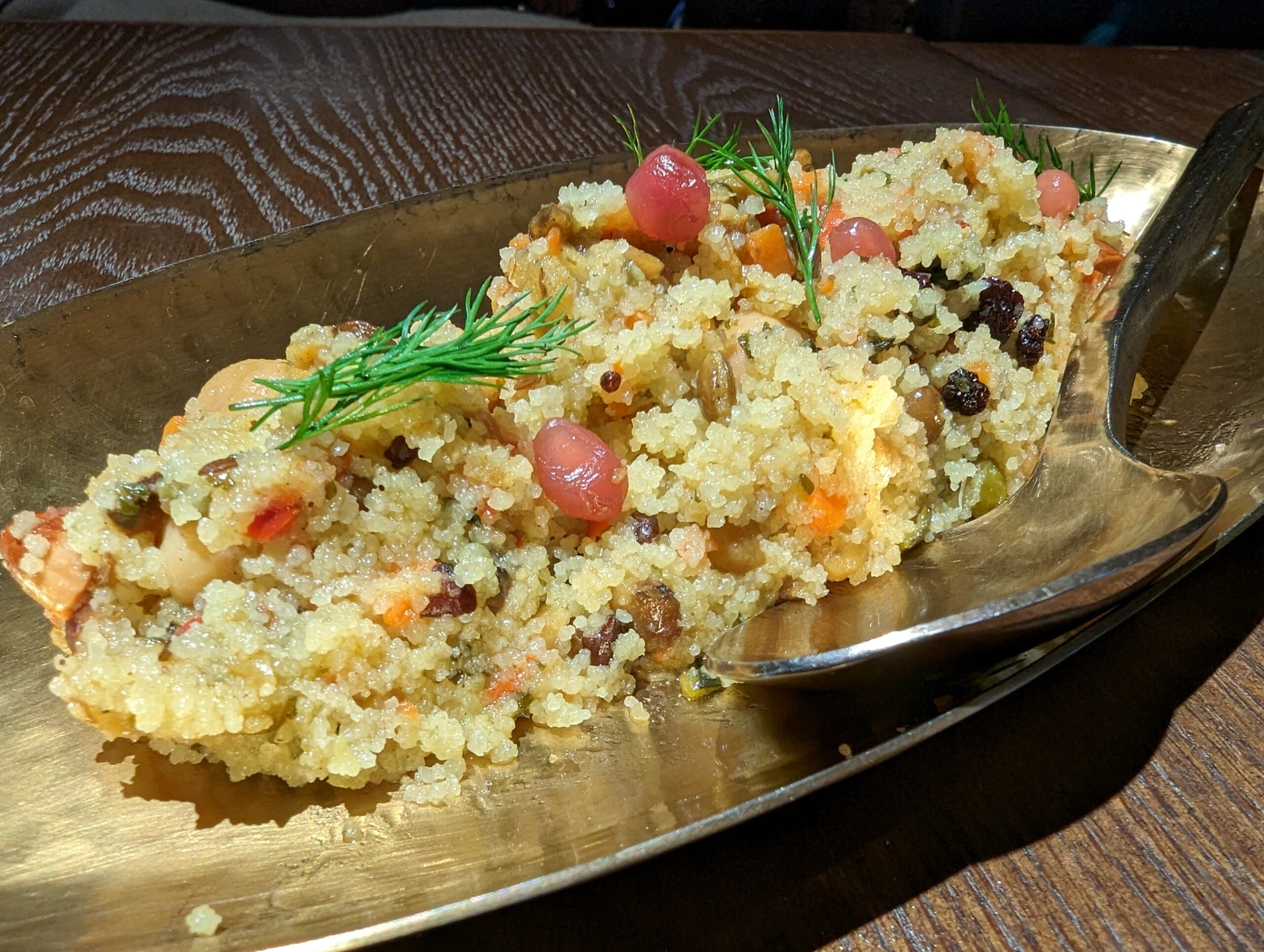 世界最小のパスタと言われるクスクスは口当たりが大好き。 スパイスやハーブの風味に、ナッツの食感やレーズンの甘さが融合して複雑な味わいが楽しめます。