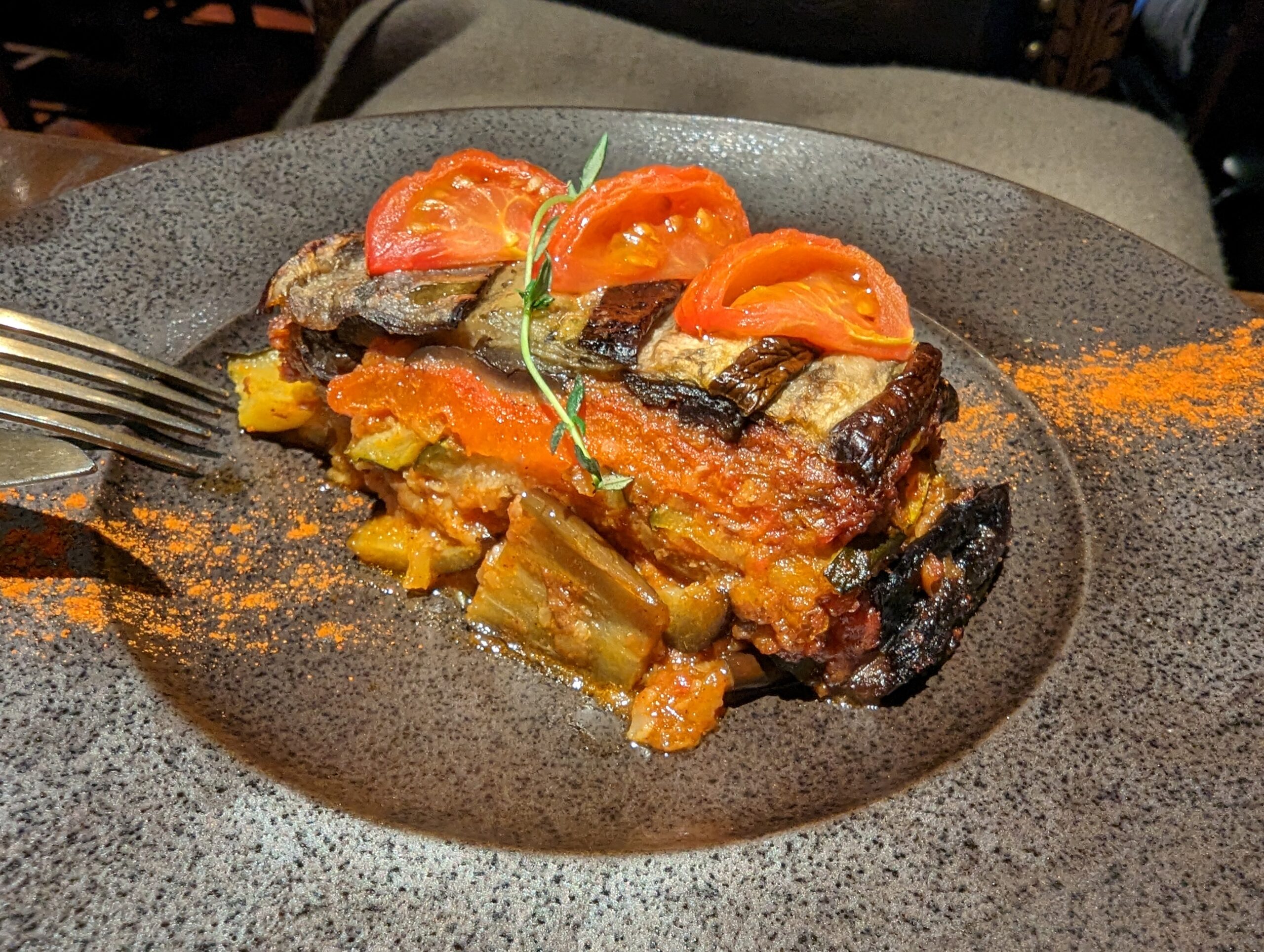 ラザニアのようですが、ナスやトマトなどを使った野菜ベース料理。