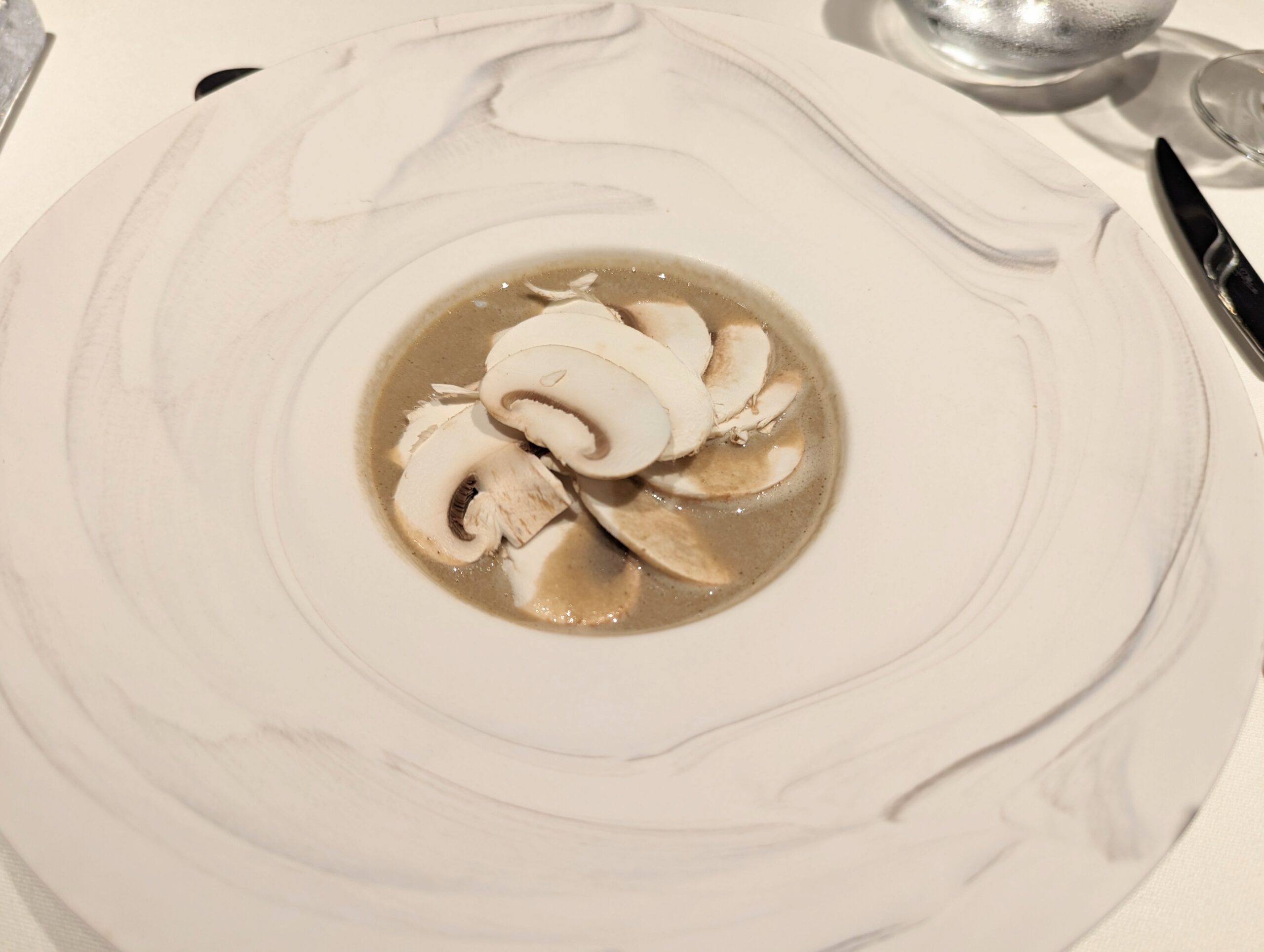 Potage スペシャリテ 発酵マッシュルームスープ 温泉卵 自家製パン すごく楽しみにしていた一皿。2週間発酵したというマッシュルームは旨味が凝縮され美味。 これだけでも十分美味しいのですが、温泉卵と合わせるとまた別の味わいに。
