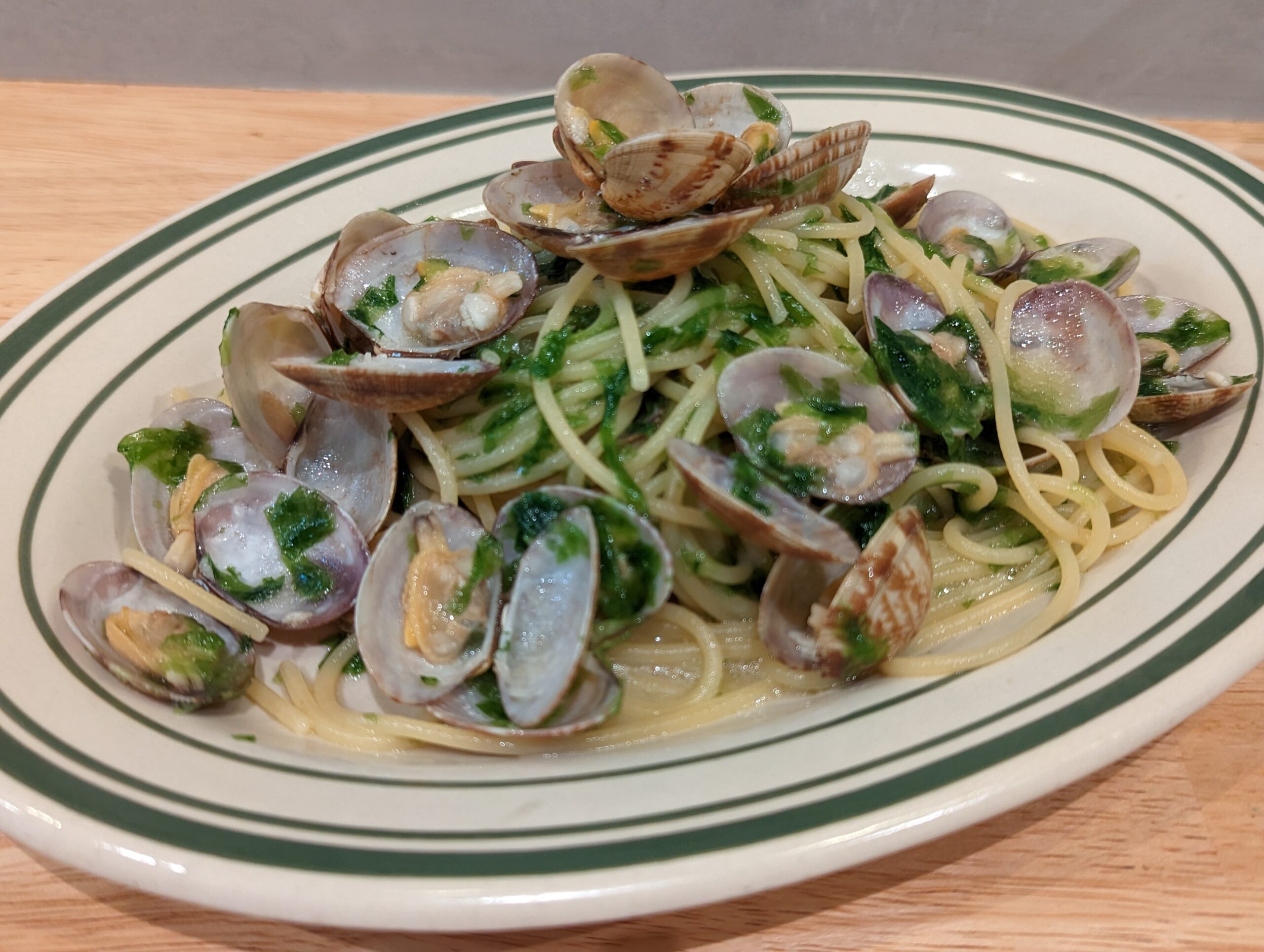 メインのパスタは「浅利と生のりのスパゲティ」。 想像以上にたっぷりのボリューム、特に浅利の量がすごい! 生のりもしっかり入っており、磯を感じるパスタでした。