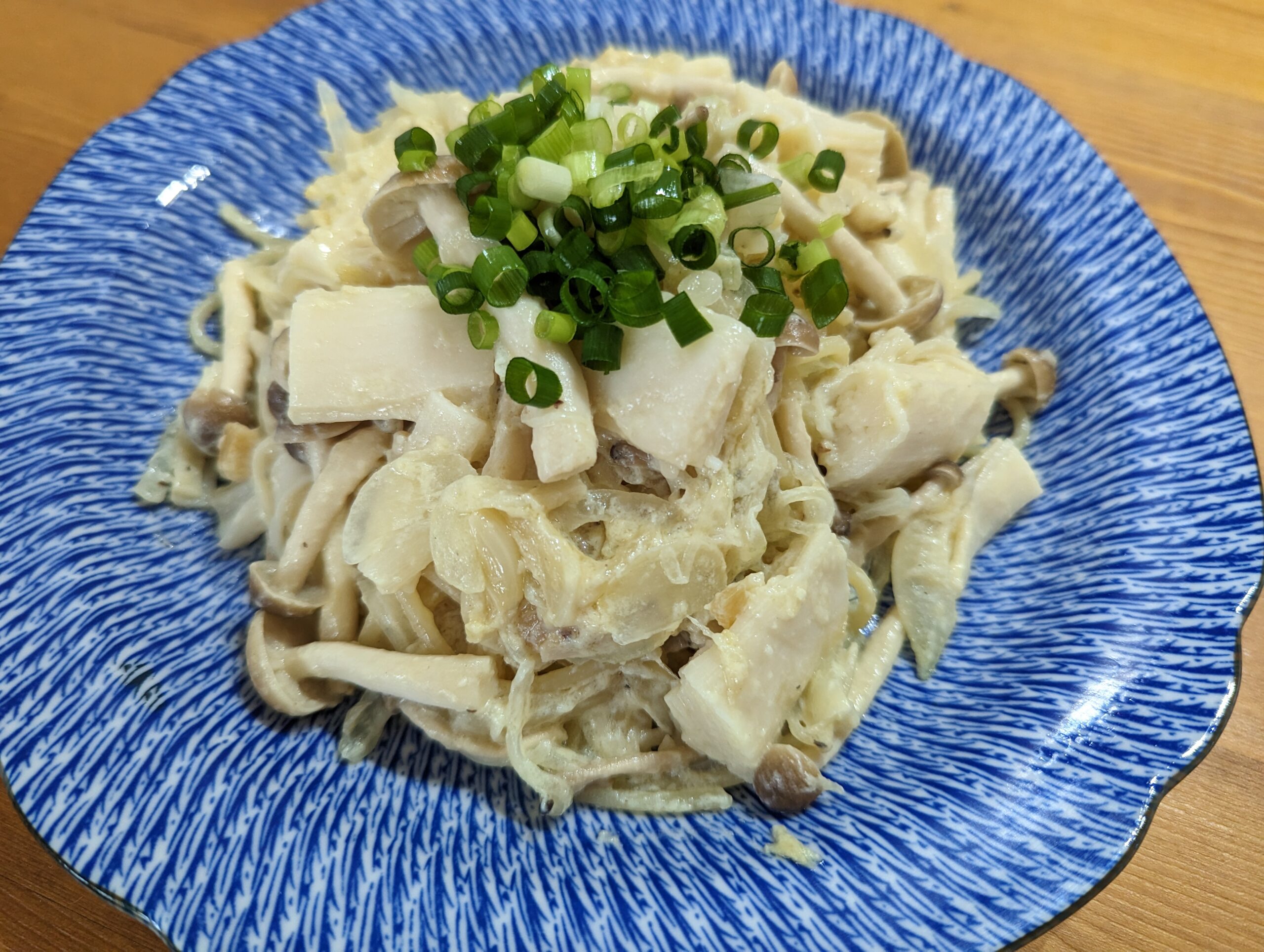 次は豆乳を使ったクリームパスタの具材として、作ってみました。 玉ねぎ、しめじ、そしてほたカマ、飾りにわけぎで色のアクセントに。 食感や食べ応えがあるので、ヘルシーながらも食べ応えのある満足度の高い一品になりました。