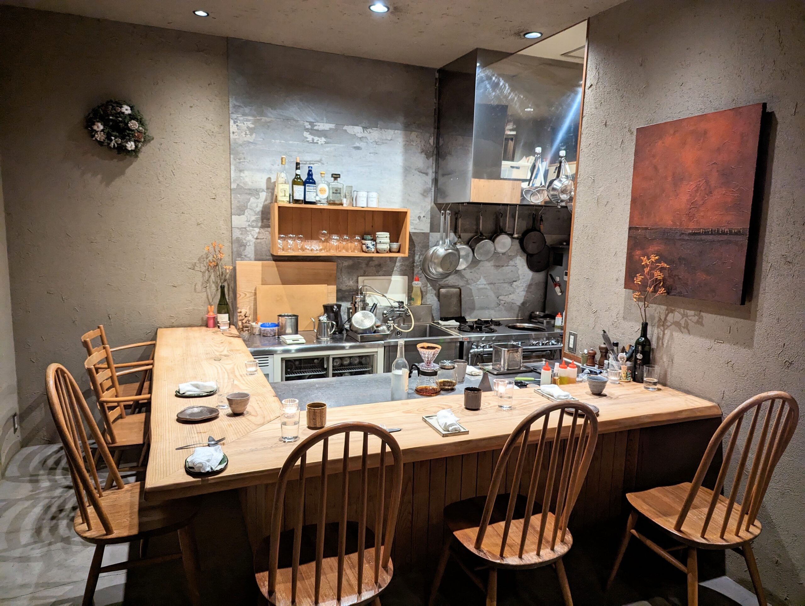席がちょうどカウンターだったので、目の前でシェフがお料理するところがみれてなかなか楽しい。気配りもよく、どこかのお宅に来ているようなそんなホンワカした温かさもあります。