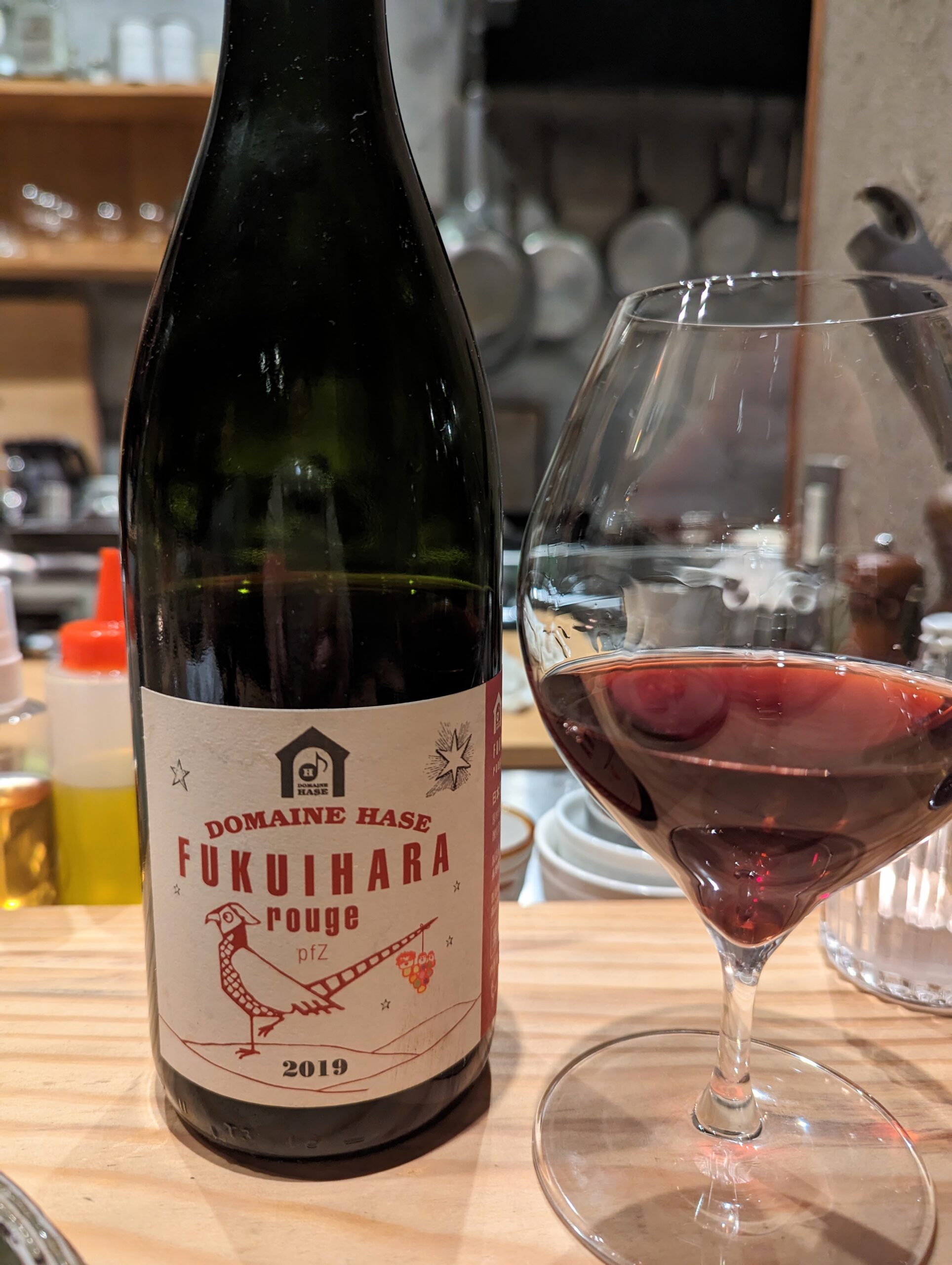 ここで希少ワインを出していただきました。 長野高山村にあるドメーヌ長谷の「FUKUIHARA rouge pfZ 2019」。 ジューシーで優しい味わい。