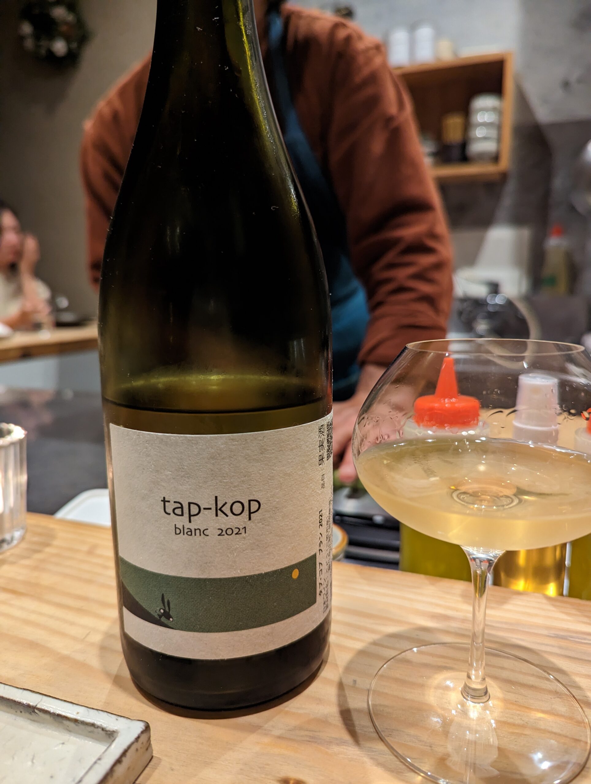 kondoヴィンヤードの「Tap-kop Blanc 2021」。 品揃えに定評がある二番通り酒店から仕入れているそう。