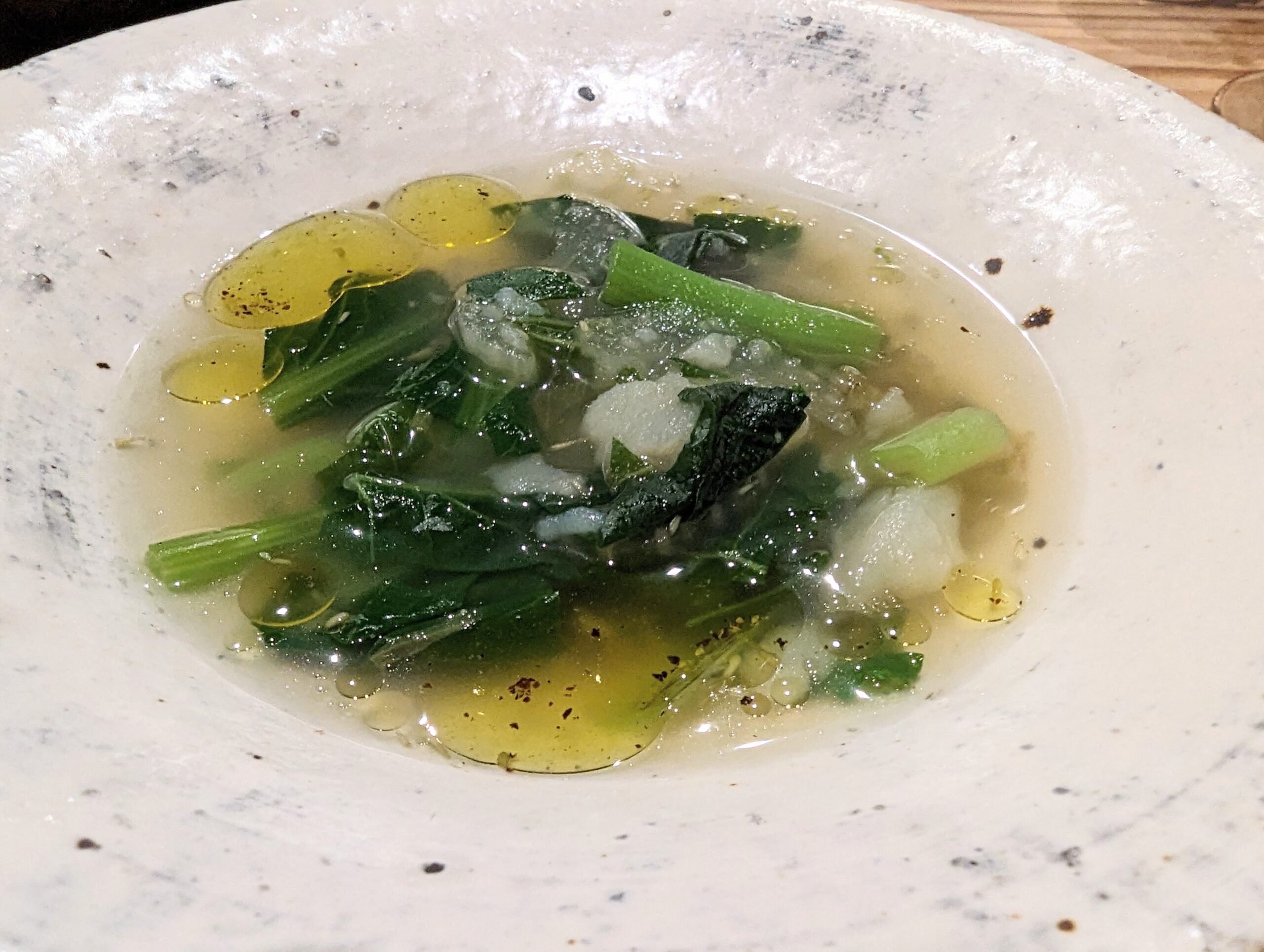 山菜を使ったスープかな。