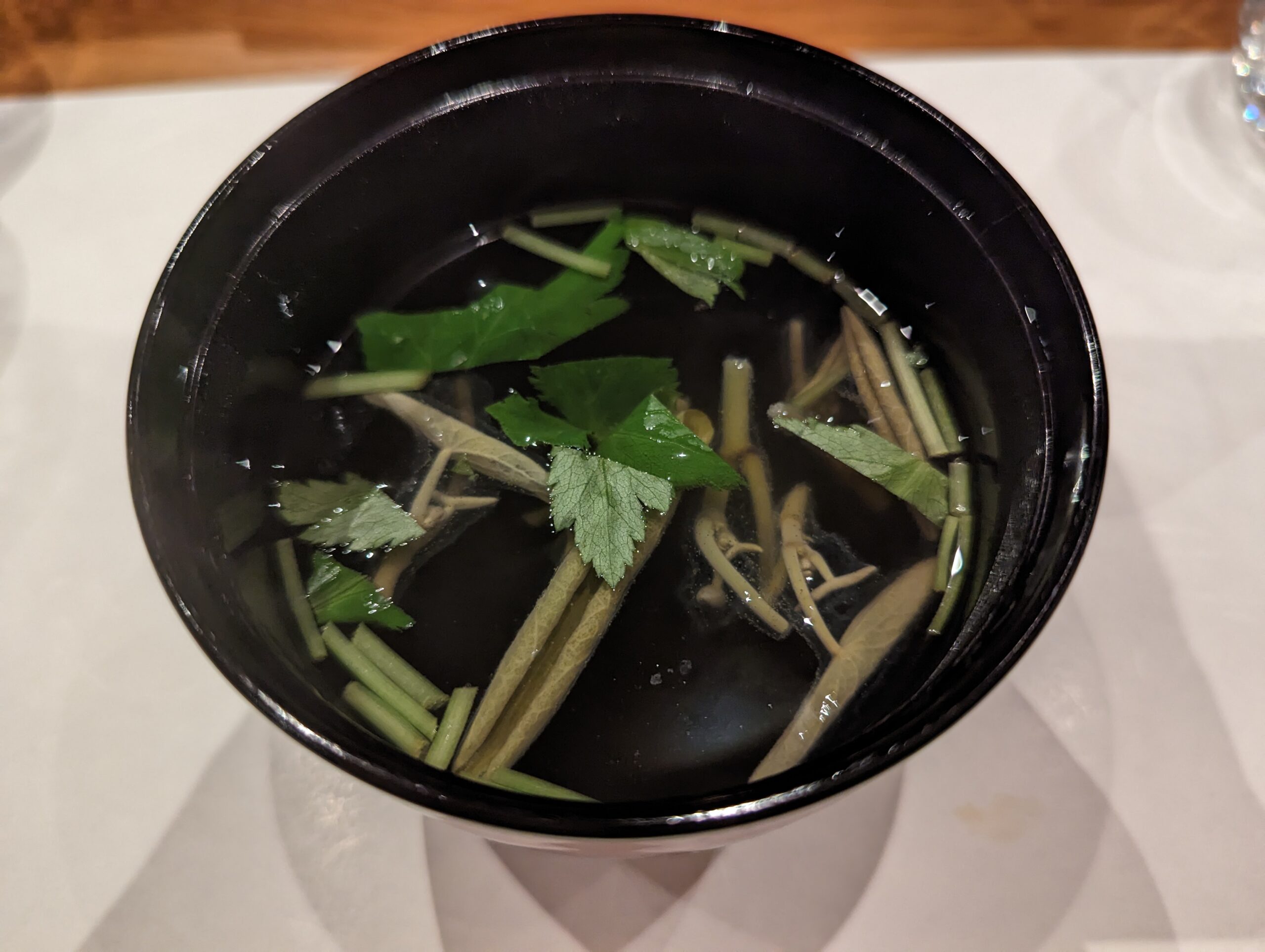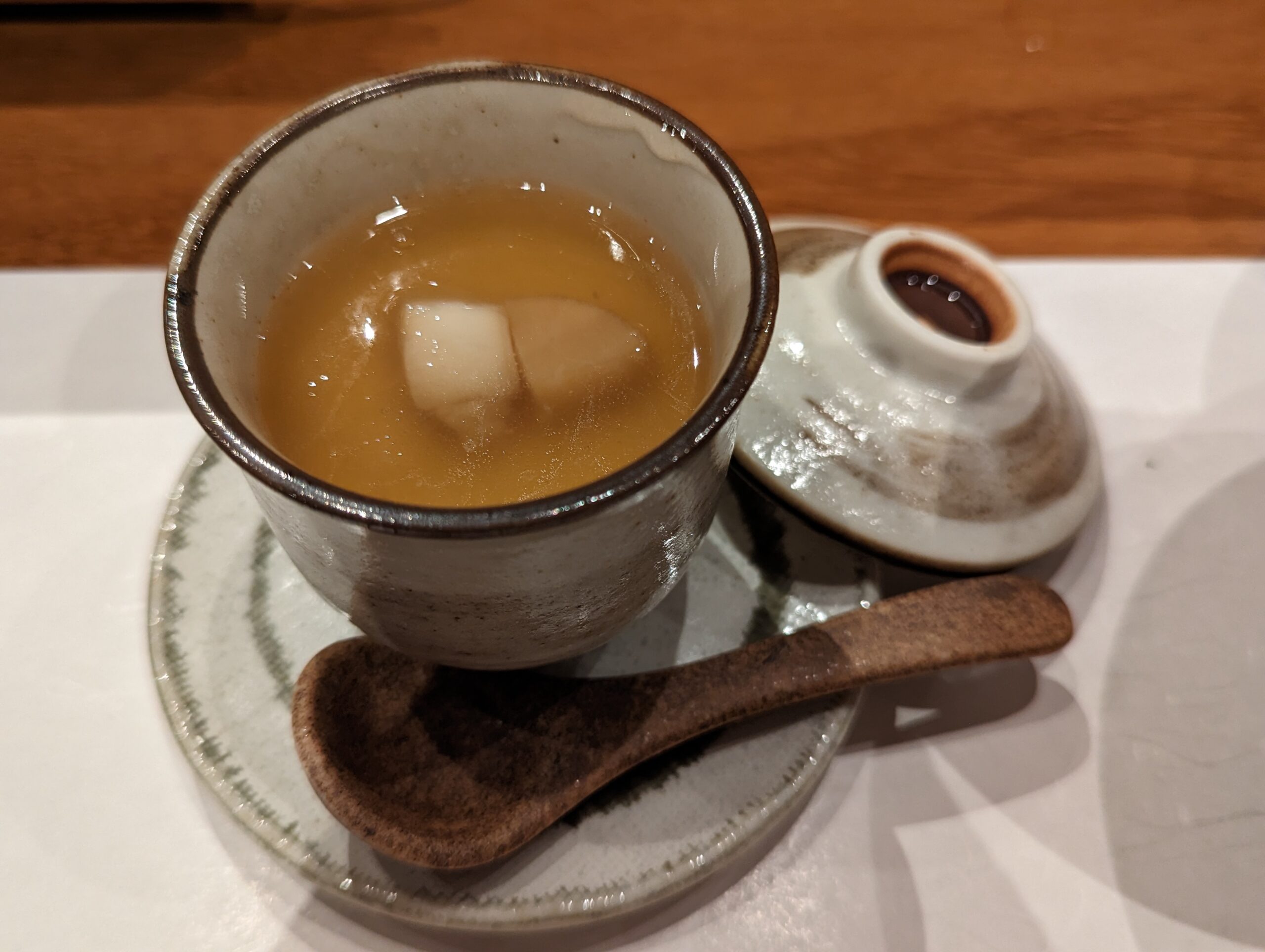 握りの後は、「じゅんさいのお吸い物」。 食感がツルツル、喉越しが心地よい。
