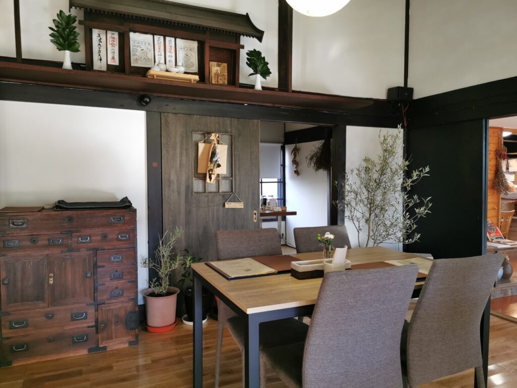 お店の中は古民家を生かしたモダンなインテリアで、ハーブなども香りがするリラックスできる空間。