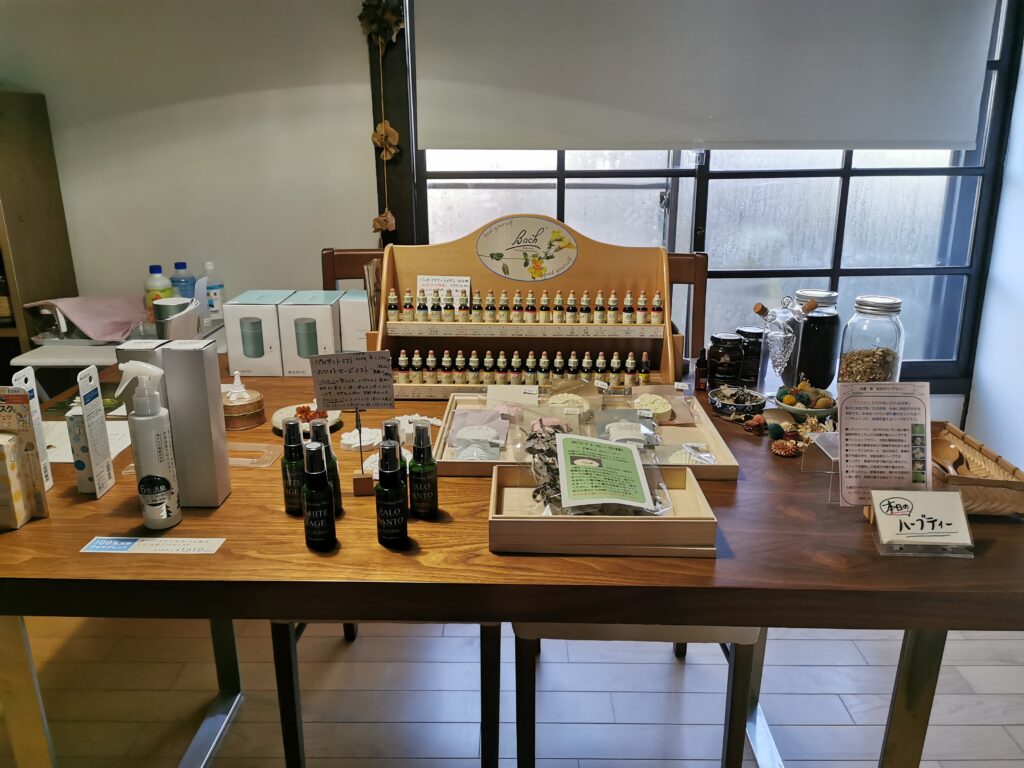 食事の後、ハーブの商品が並んでいるお部屋も見学。 ハーブのオイルやそれを使った商品が並んでいました。