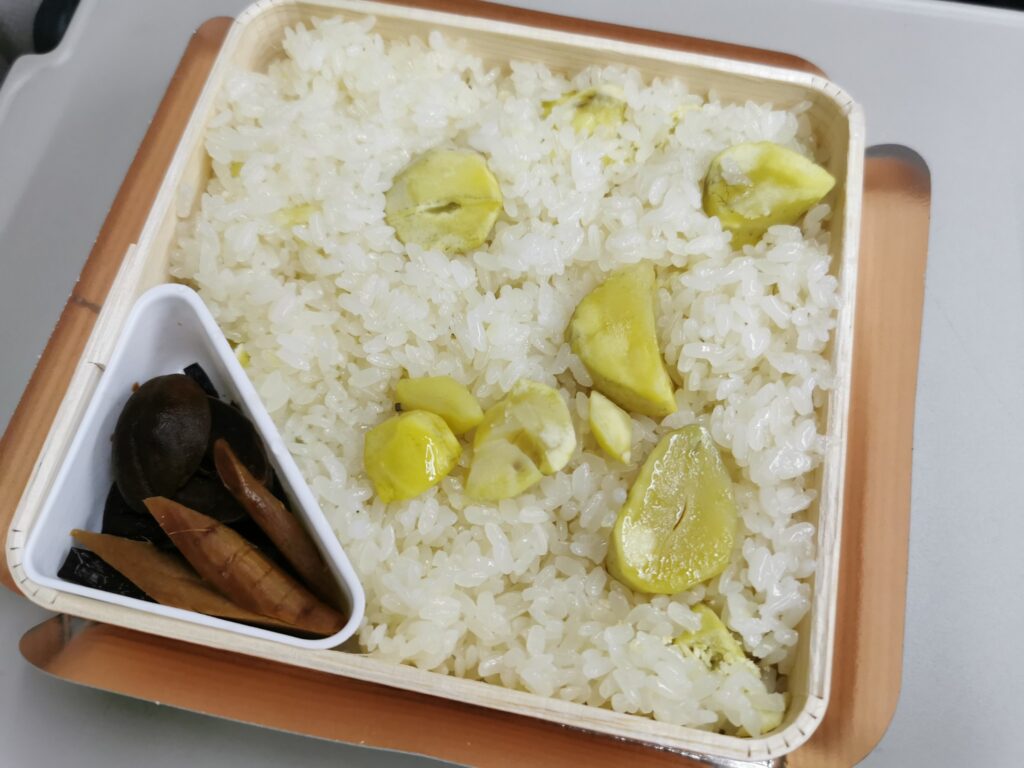 店内は栗の和菓子のほかに、栗おこわやソフトクリームなども販売しています。 栗おこわはお弁当として購入し、帰りの新幹線でいただくことに。
