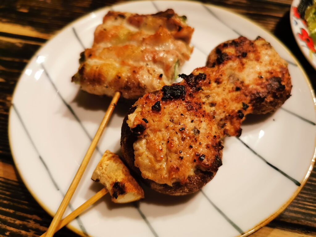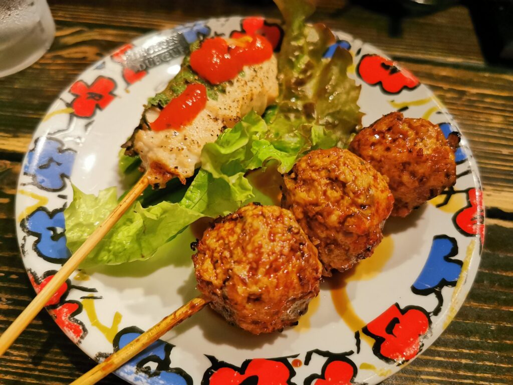 続いてはつくねとささみ。 つくねは甘辛いタレと香ばしさが混じり合い、いい感じ。 ささみは大葉と梅ソースでさっぱりといただけます。