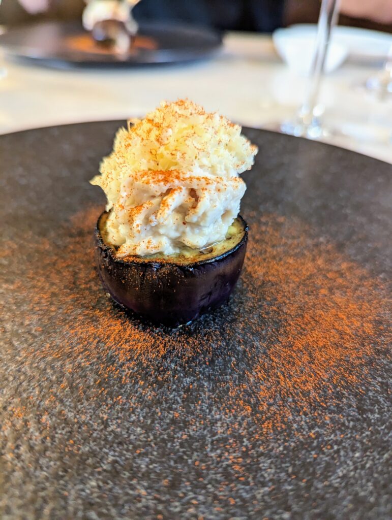 ナスの上に豆乳ホイップという組み合わせ。 さっぱりといただけました。