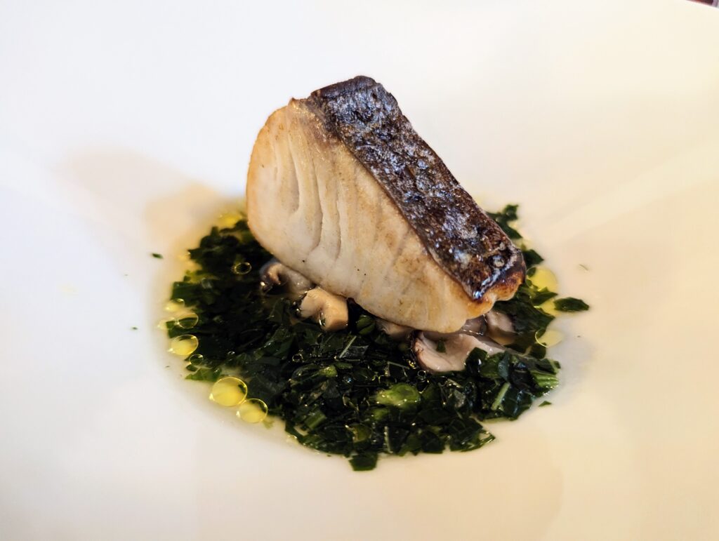 脂の乗ったさわらに、コンソメと生のりのソースでいただきます。 生のりの磯香りとお魚がピタッと合いますね。