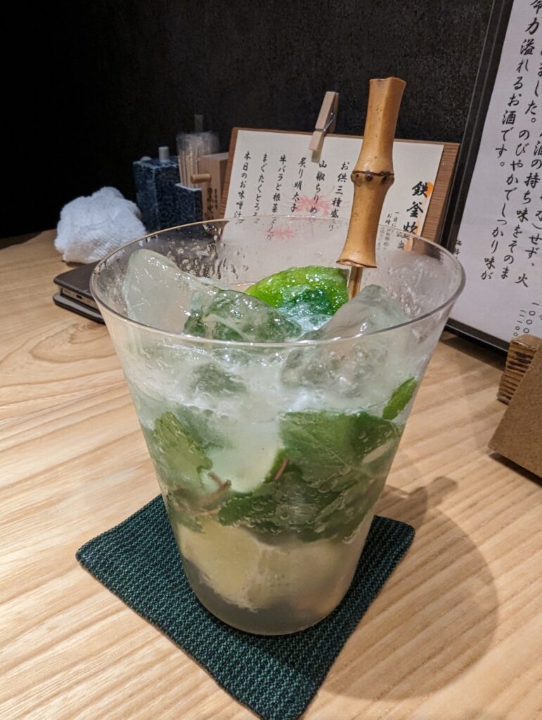 最初の一杯はレモンサワーで。ハーブやレモンがたっぷり入っていて爽やか。