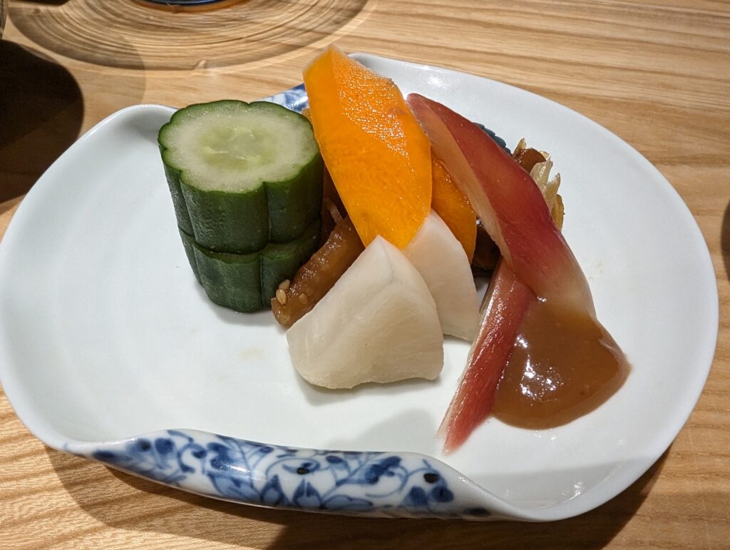 ・本鮪ネギ醤油 ・鰹ふぐの子とろろ ・水蛸胡麻油塩 ・金目鯛とろろ昆布出汁 ・湯引き鱧 梅肉 ・湯葉豆腐 ・剣先烏賊 ・シャインマスカット黄身酢和え ・牡蠣