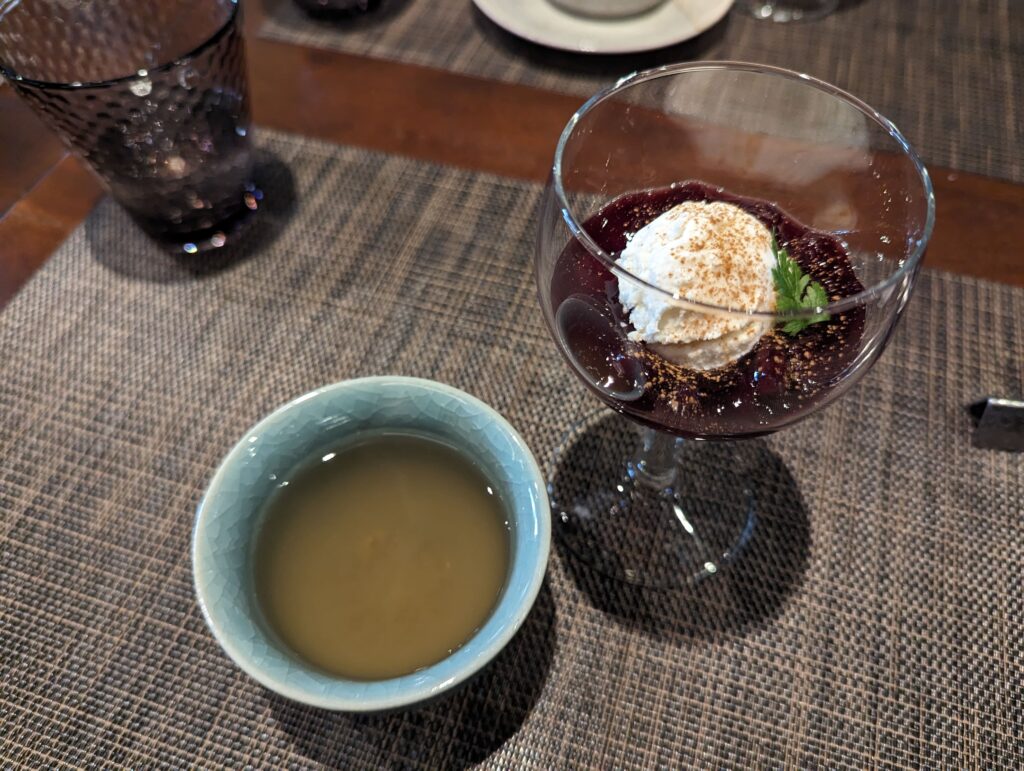 ペルーの家庭的なデザートとのこと。 食後の飲み物は自家製ハーブティーをいただきました。