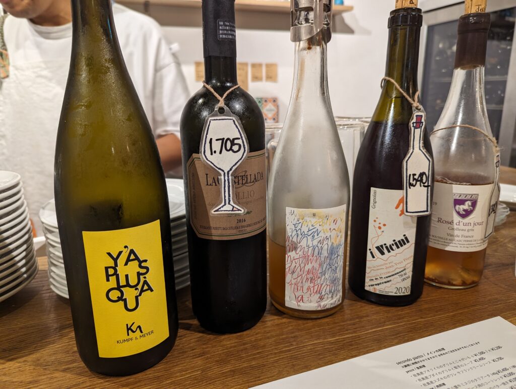 ワインはナチュールワインをグラスで色々といただくことができます。