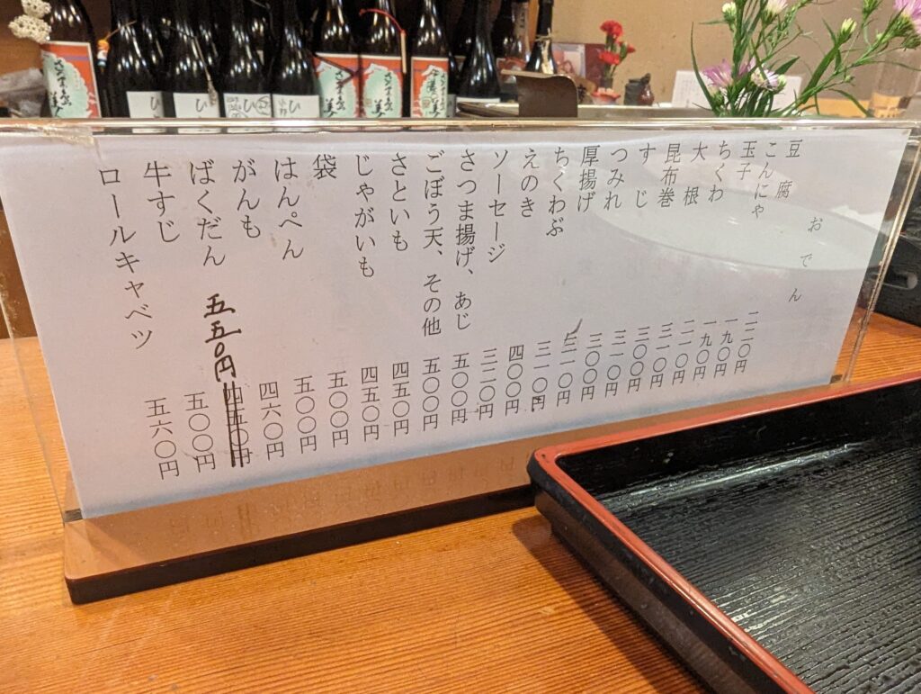 次回は早めにお伺いして、おでんだけでなくお料理もいただきたいと思います。