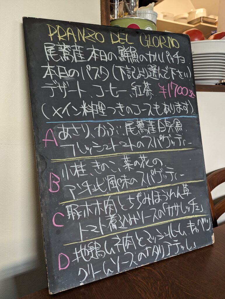 ランチコースは1700円、4種類のパスタから選べるようです。