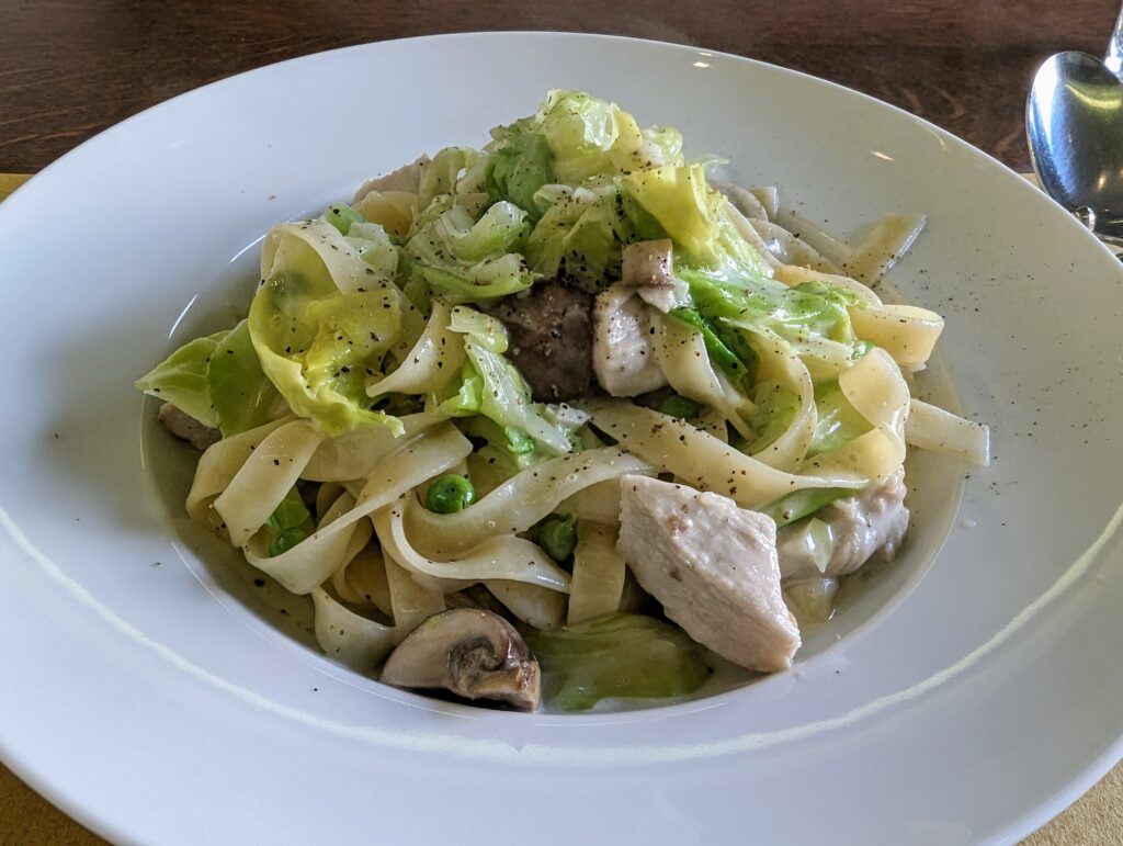 地鶏ムネ肉とマッシュルーム、キャベツクリームソースのタリアテッレ
