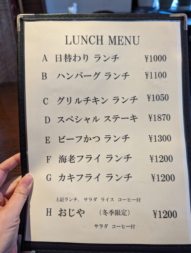 外観からだと中が見えないので、なかなか入りずらかったのですが、どことなく上品な印象。 「西洋料理の店」と書いてあるのがちょっとレトロでいいですね。