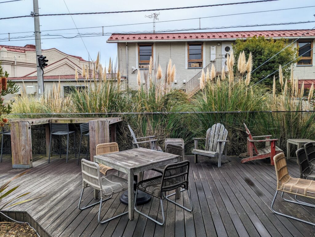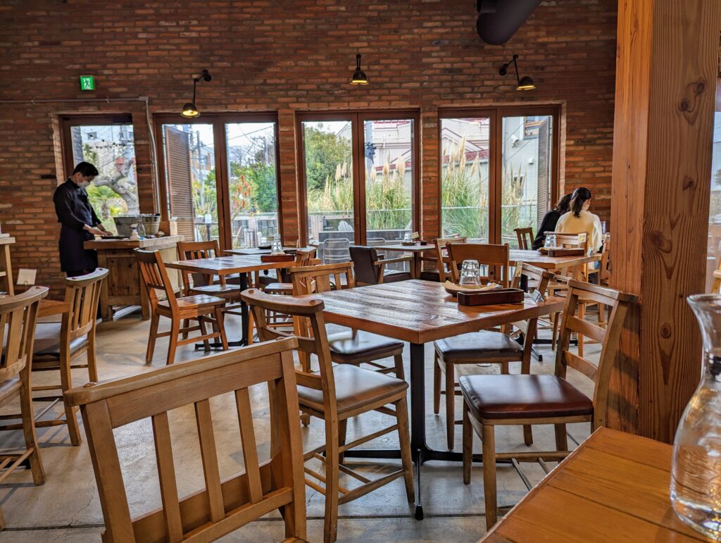 ウッディ調の広々とした店内はおしゃれで居心地がいい。 気候が良ければテラス席も気持ちよさそうです。